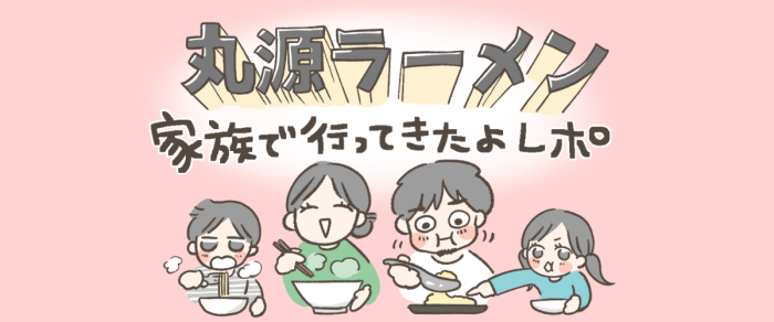 こんにちは、みやけです。小学1年生のヒガシくん(7歳)と、年少のミナミちゃん(4歳)の二児の母をしています。今回はずっと行きたかった丸源ラーメンさんに、家族4人で初めて行ってきた様子をレポートしたいと思います!