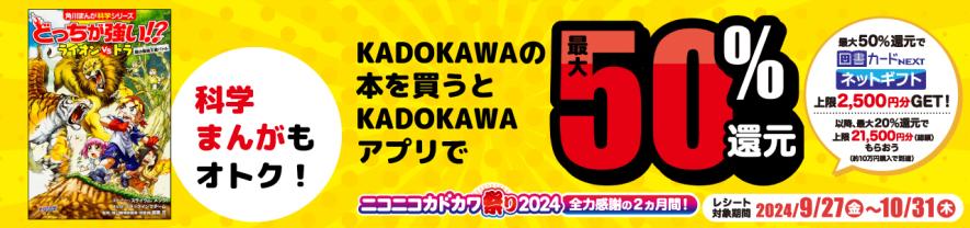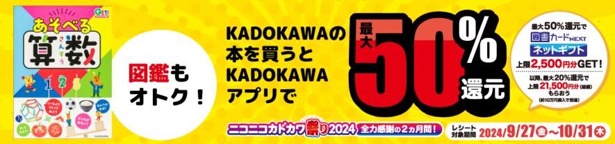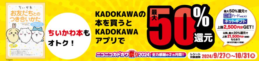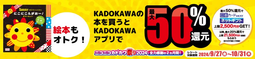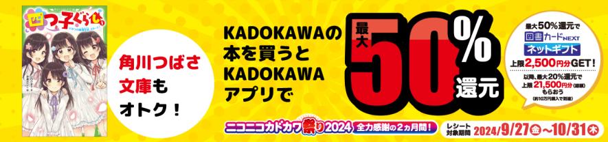 KADOKAWAの全書籍・雑誌を対象に最大50%還元(上限2,500円分 以降、最大20%還元)となるニコニコカドカワ祭り2024第1弾が2024年9月27日(金)より開始!。高額セットも今が一番オトク!