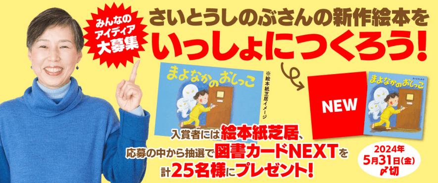 さいとうしのぶさんの絵本をいっしょにつくろう! 『まよなかのおしっこ』絵本紙芝居や図書カードNEXTを計25名様にプレゼント♪