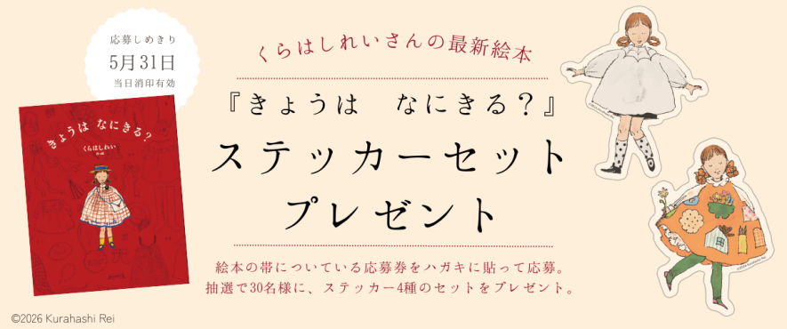 くらはしれいさんのオリジナルステッカーセットが30名様に当たる! 『きょうは なにきる?』発売記念キャンペーン