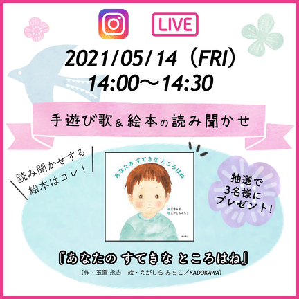 3月に発売した『あなたの すてきな ところはね』(作:玉置 永吉 絵:えがしら みちこ)を、パパとママに役立つ情報を発信しているマイナビ子育てのインスタライブにて読み聞かせしていただくことになりました!