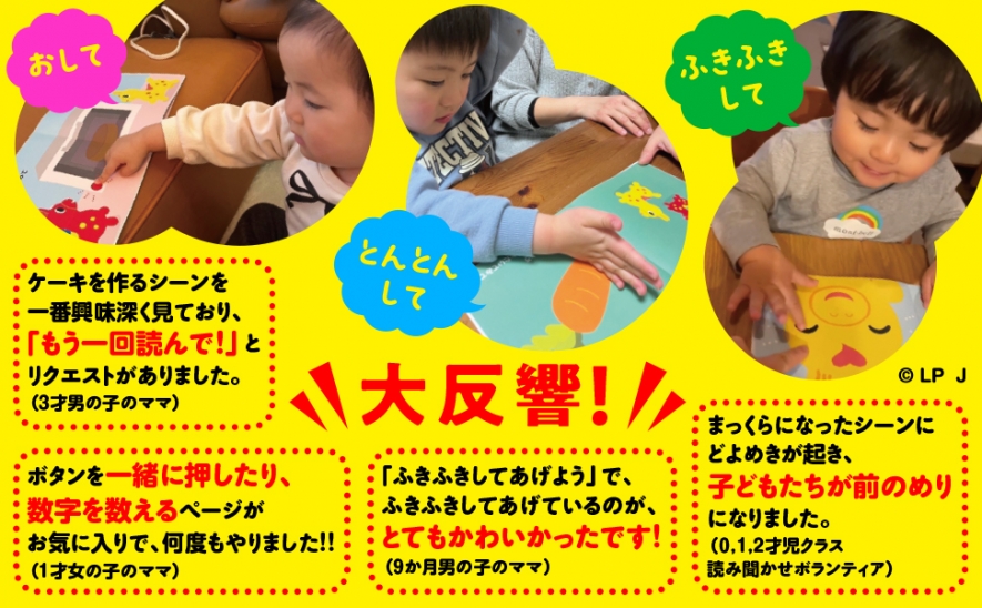 1歳から長く楽しめ、はじめての参加型絵本として、プレゼントにもぴったりの1冊です。