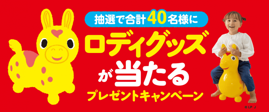 絵本を読んだ感想とアンケートに答えた方の中から抽選で合計40名様にロディグッズをプレゼントいたします。
