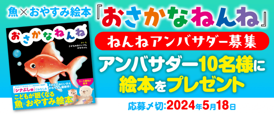 6月12日発売予定のおやすみ絵本『おさかなねんね』の発売記念企画として、ねんねアンバサダーを募集します!!