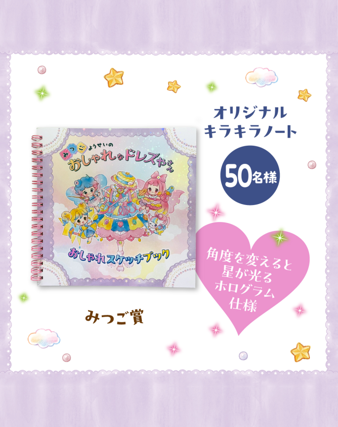 絵本の発売を記念して、このオリジナルコラボ商品が抽選で当たる「みつドレ☆ときめきキャンペーン」を実施! 応募要項は下記のとおり。ぜひご応募ください!