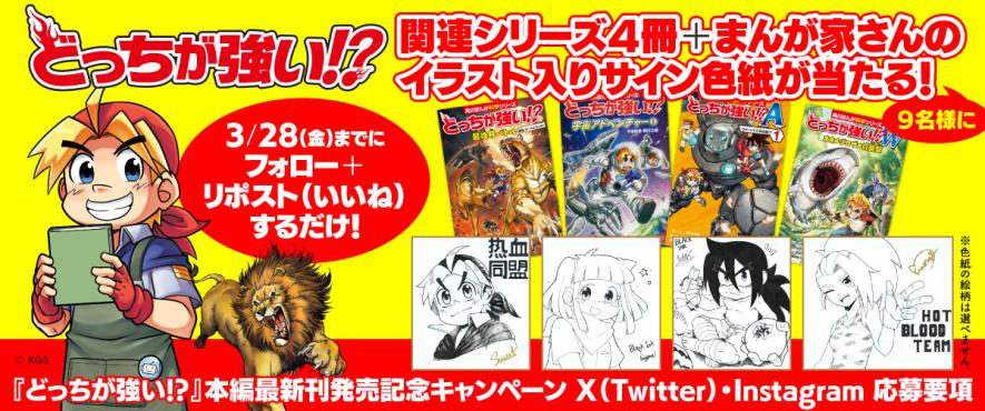 『どっちが強い!?』関連シリーズ4冊+まんが家直筆イラスト入りサイン色紙1枚 抽選で計9名様