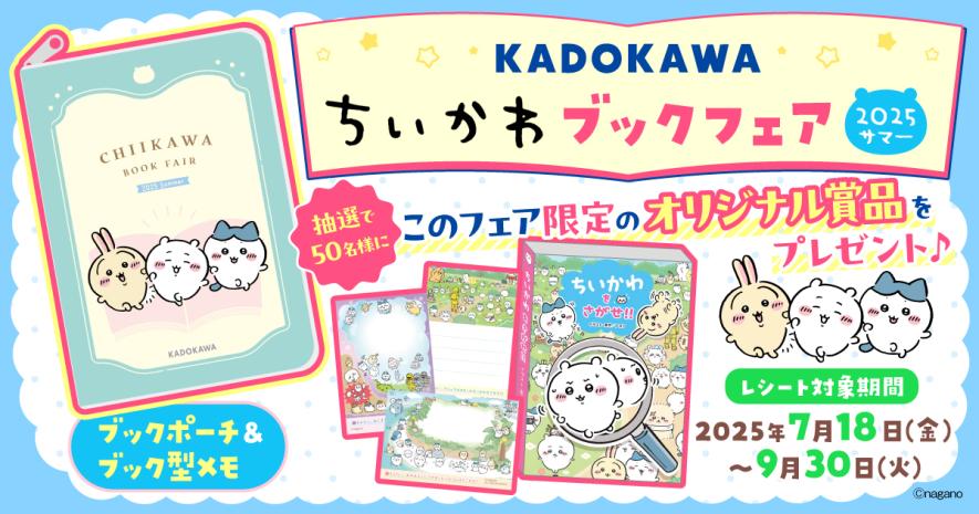 オリジナルブックポーチ&ブック型メモが当たる「KADOKAWA ちいかわブックフェア2025サマー」が開催! スマホ壁紙は応募者全員にプレゼント!