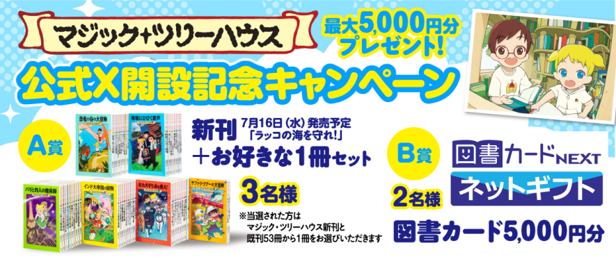 抽選で5名様にマジック・ツリーハウスや図書カードが当たるプレゼントキャンペーンを実施します!
