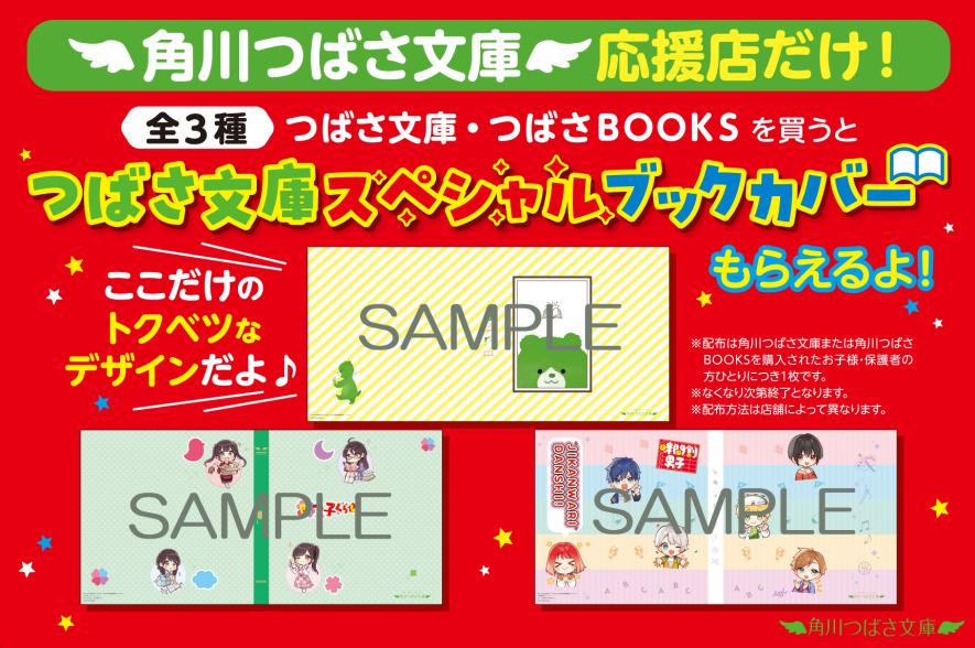 「つばさ文庫応援店」で角川つばさ文庫・角川つばさ文庫の本を買うと、「つばさ文庫スペシャルブックカバー」がもらえます。