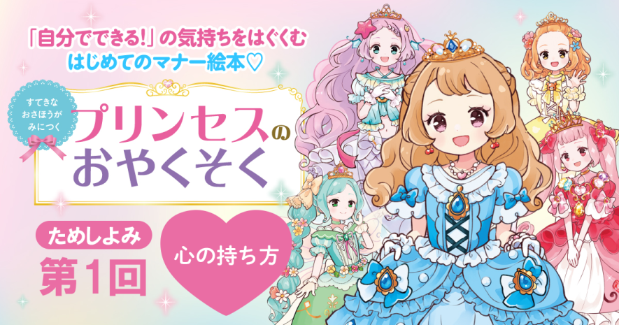 この本では、憧れのプリンセスの物語を何度も夢中で楽しむうちに、社会で生きていくために大切にしたい「おさほう」や「マナー」が自然と身につくよう、たくさんの工夫がほどこされています。
