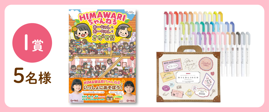 ■I賞 『HIMAWARIちゃんねる まーちゃん&おーちゃんをさがせ!!』&ゼブラ(ZEBRA) 蛍光ペン マイルドライナー 35色セット ギフトBOX入 WKT7-35C 5名様