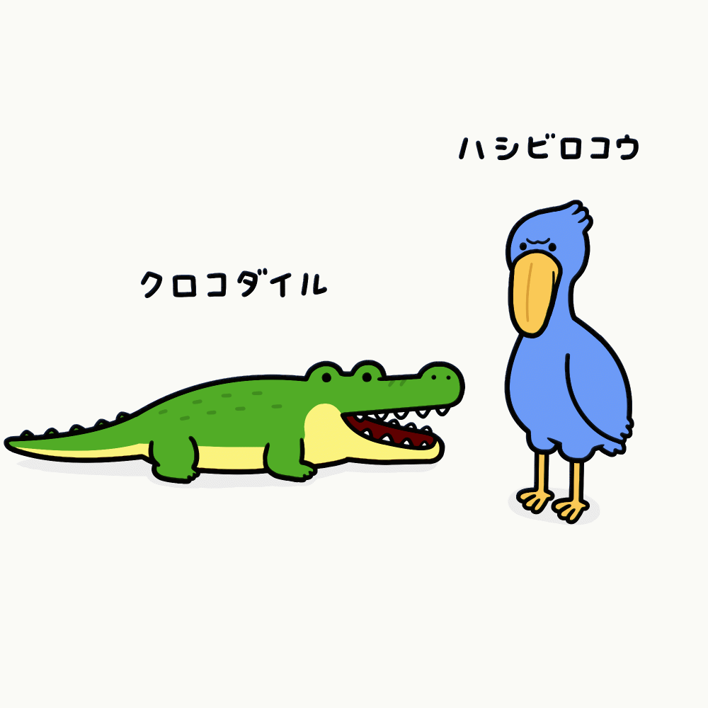 タップかスクショで止めてクロコダイルとハシビロコウをちょうどいい長さにするゲーム