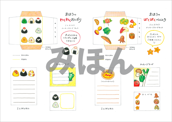 『まほうのわくわくおにぎり』『まほうのぱくぱくべんとう』のミニ便せんをプレゼント中!