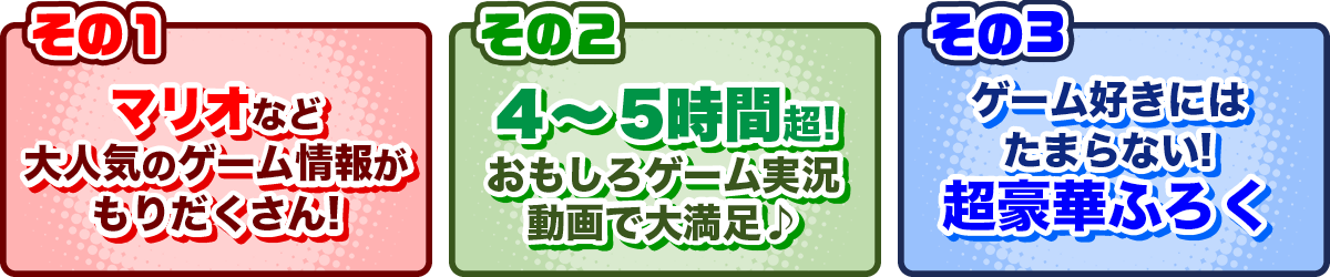 ①マリオなど、子どもに大人気のゲーム情報がもりだくさん