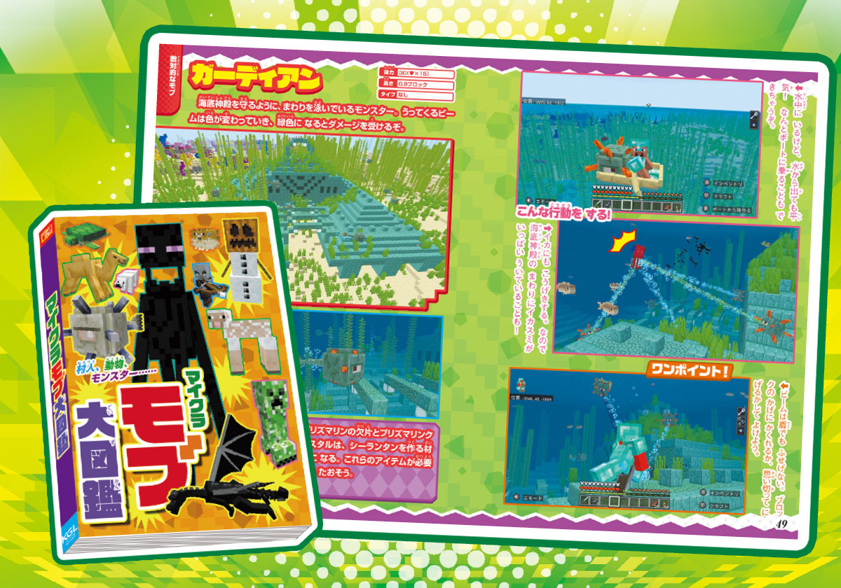 毎号、建築やブロック・アイテム、ダンジョンや生き物など、『マインクラフト』の要素を特集した100ページ超の分厚い大図鑑が付録として付いてきます。充実ボリュームで、『マイクラ』好きのお子様が夢中になることまちがいなし!