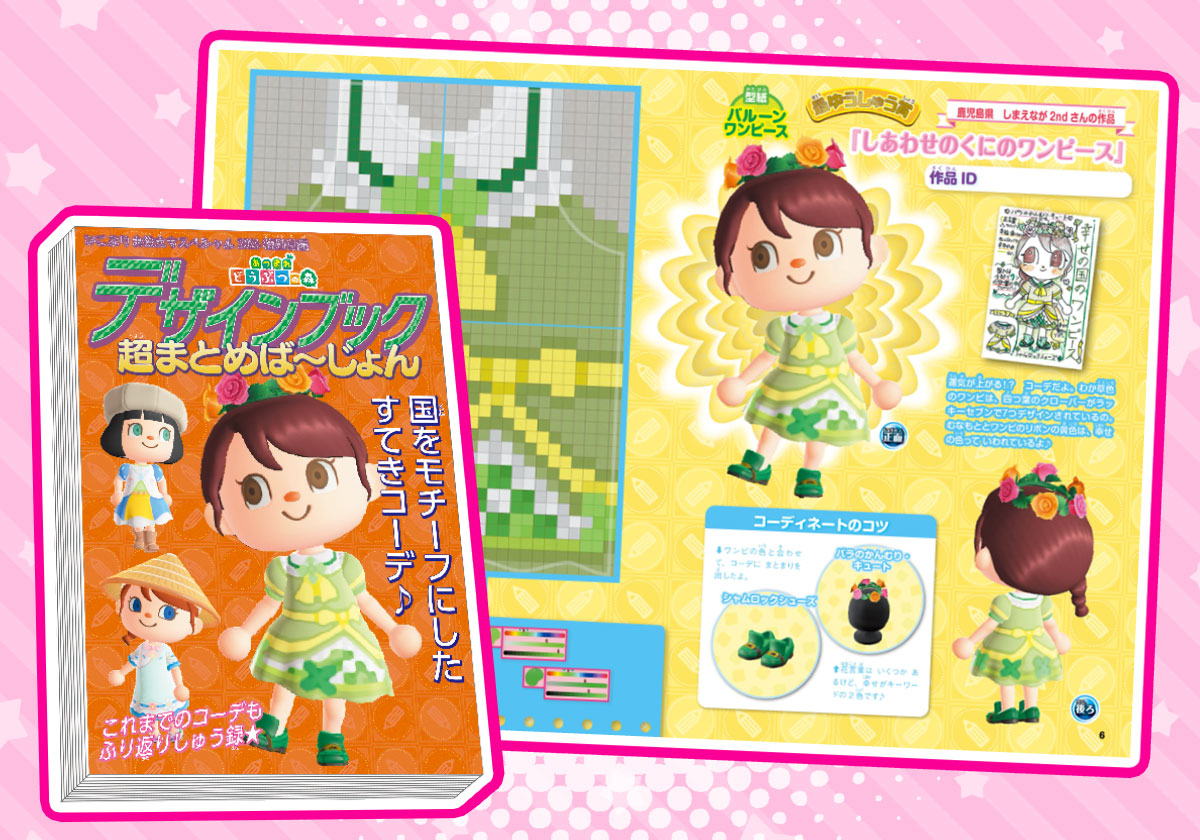 毎号テーマを募集中! お子様が考えたコーデをはがきで送ってもらい、届いた中から選ばれたコーデが、プロの手でマイデザインになって付録の冊子『デザインブック』に掲載されます。マイデザインはIDからダウンロードするか、掲載したドットを見て作ることで、『あつ森』で実際に身に着けられます。世界にひとつだけのお子様のコーデが掲載されるかも! お子様の夢が叶うドキドキの付録です。