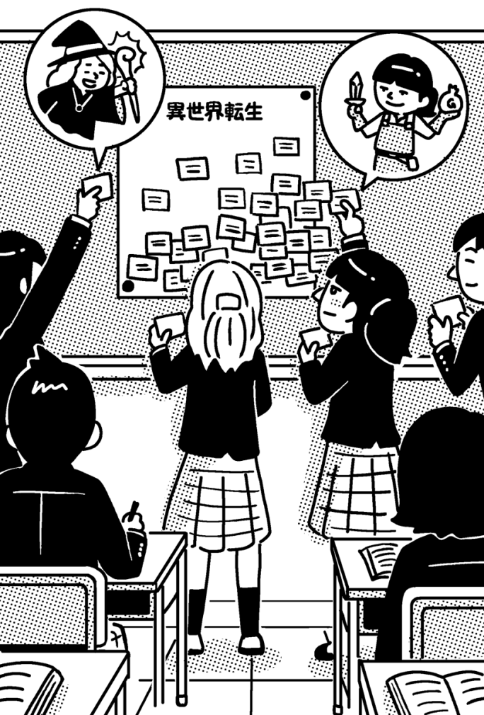 「今日の総合学習のテーマは、予定では『ライフプランを考える』でした。異世界でのジョブ選びにしたのは、先生の趣味ですが」