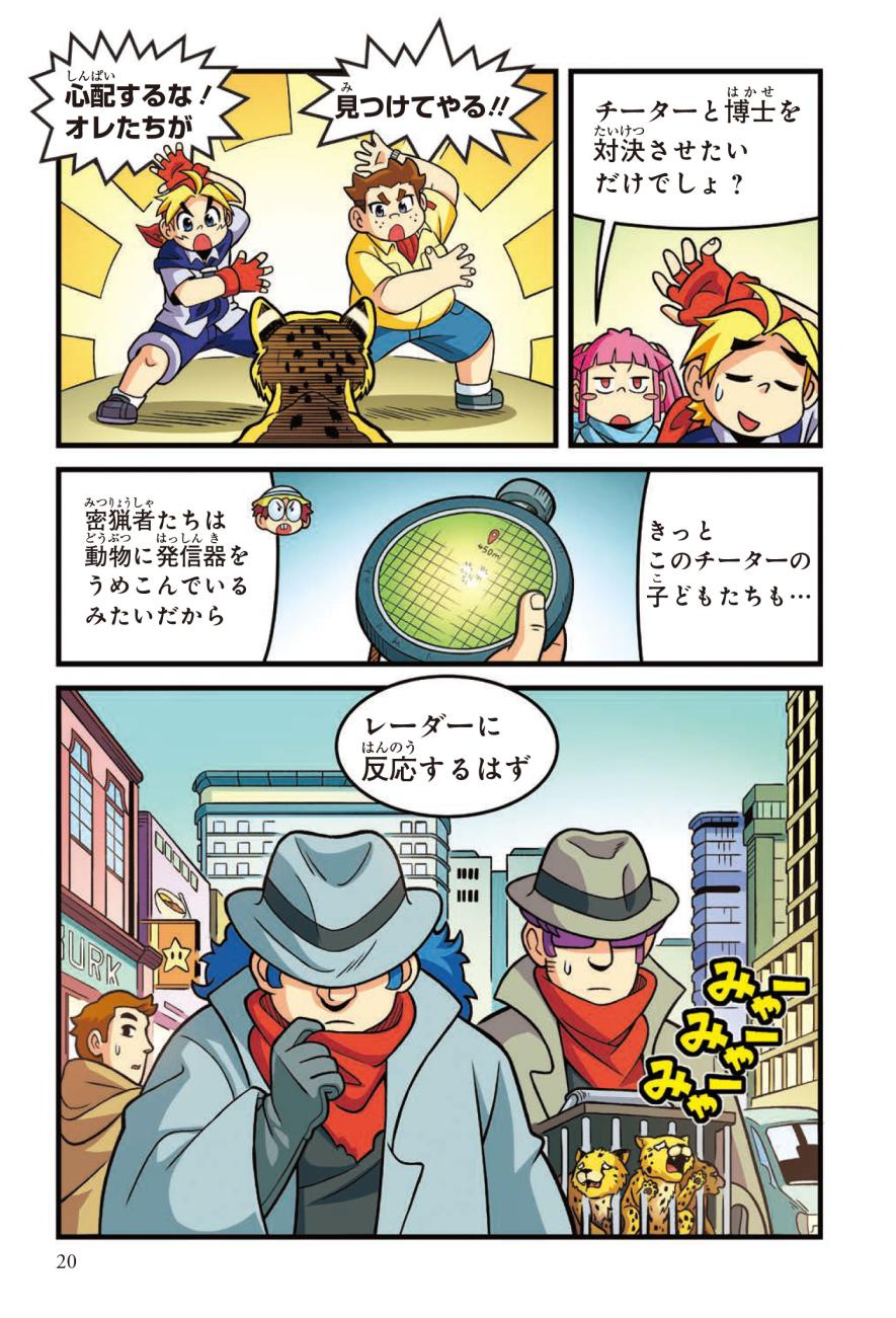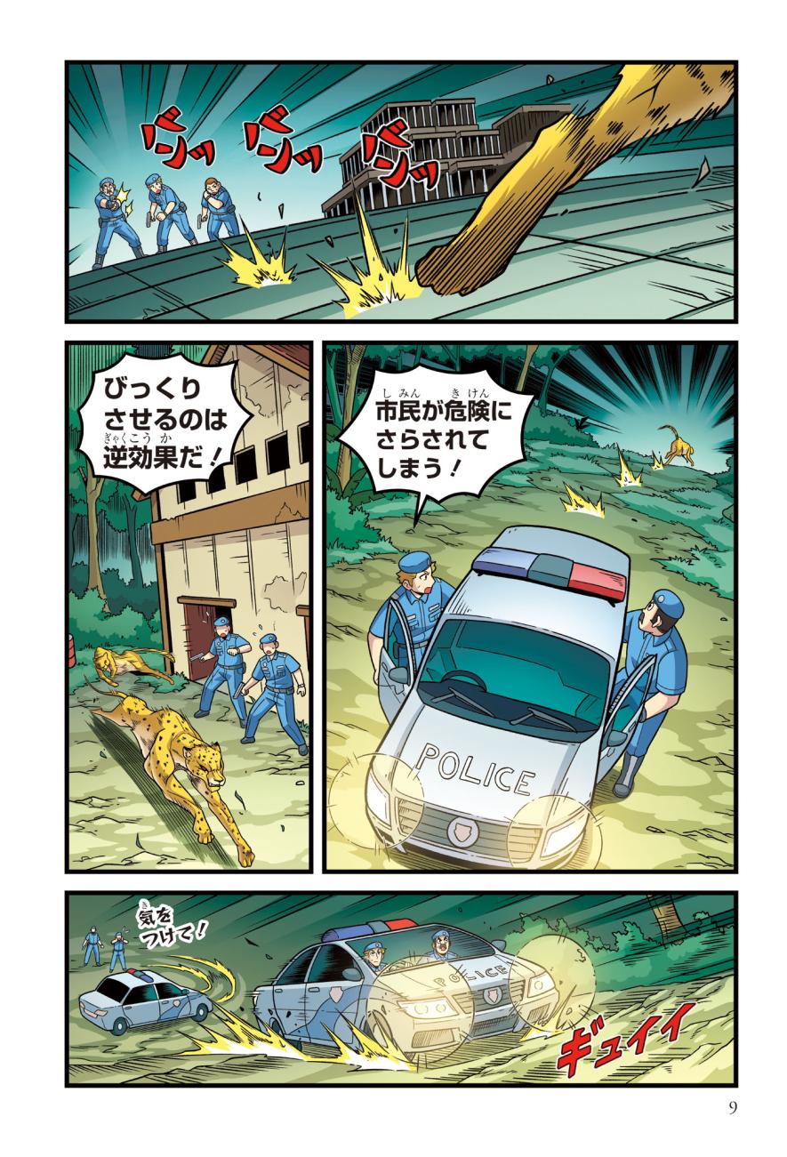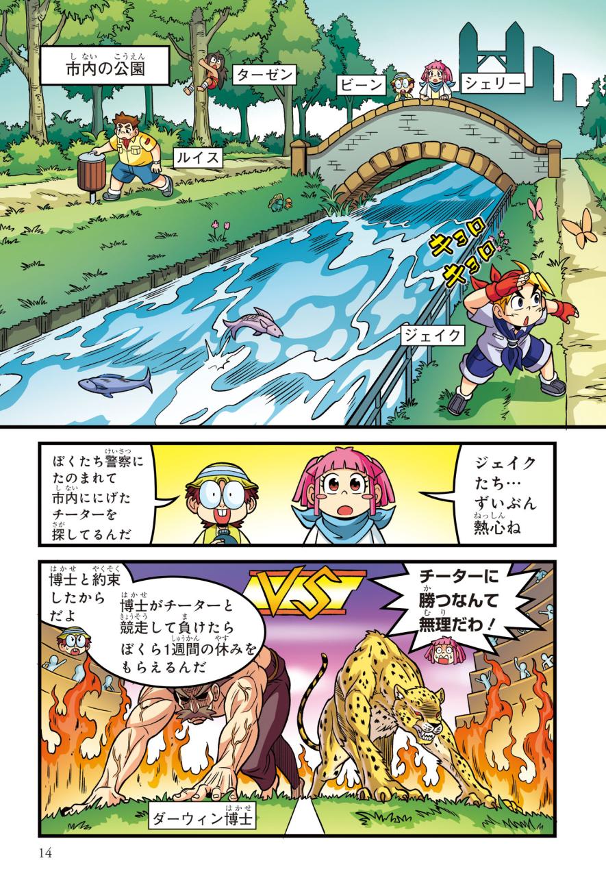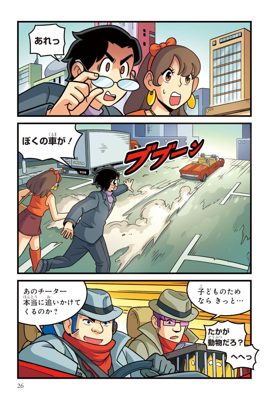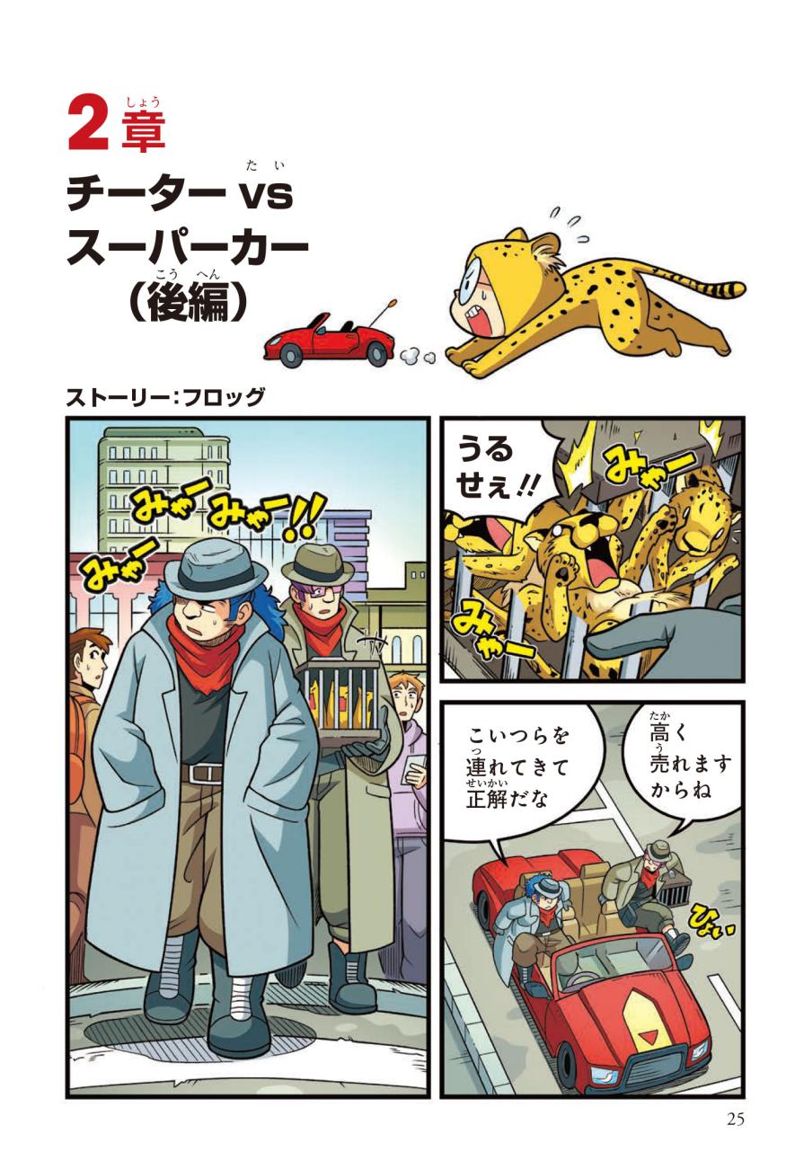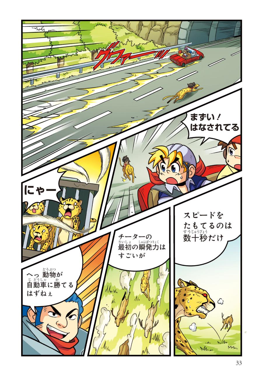 警察にたのまれて、とある町ににげたチーターを探すジェイクたち。チーターはかなり興奮しており、ターゼンが話を聞くと、密猟者に子どもがさらわれたという…。ようやく見つけた密猟者からは、子どもを返す条件は「スーパーカーとの速さ勝負」とつきつけられる。3秒で100キロの速度を出せるチーターは、スーパーカーに勝てるのか!?