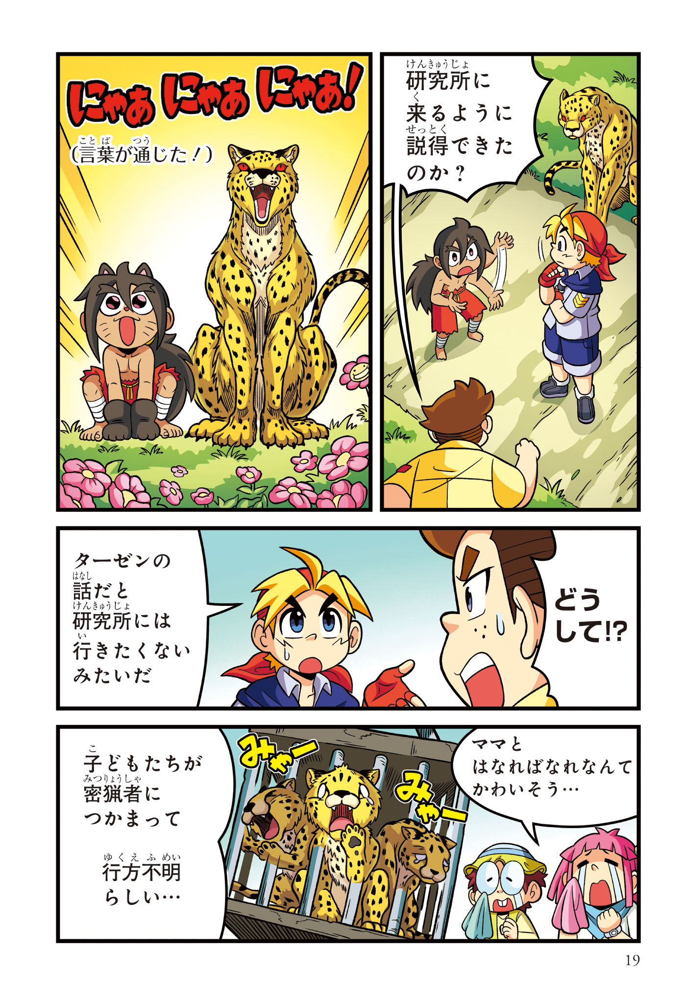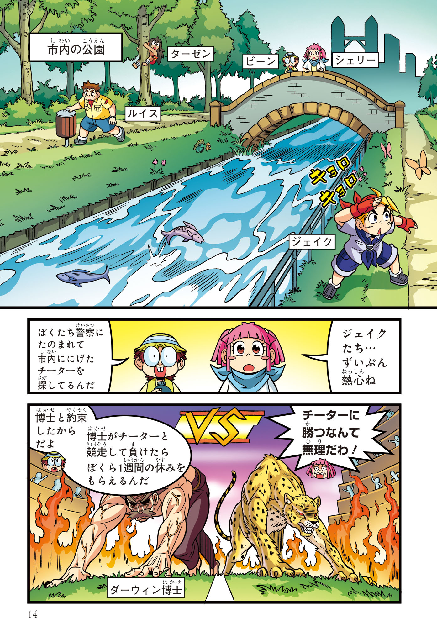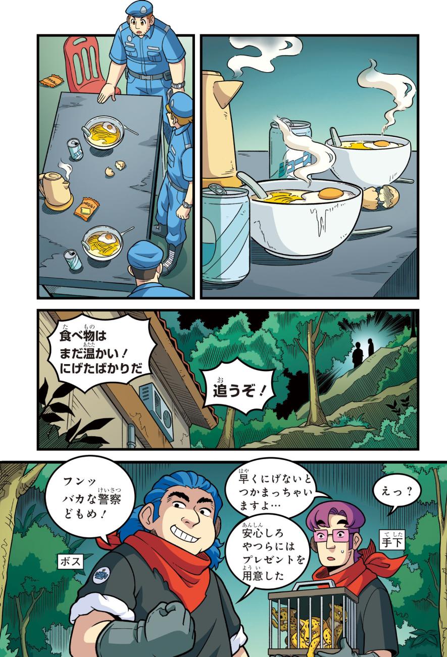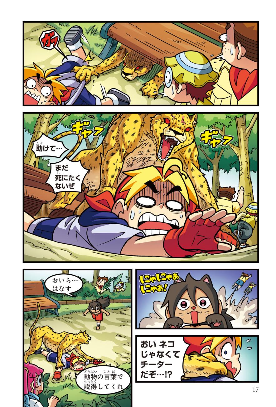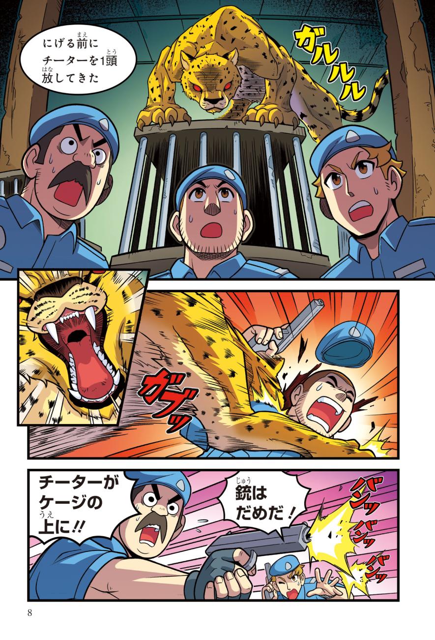 警察にたのまれて、とある町ににげたチーターを探すジェイクたち。チーターはかなり興奮しており、ターゼンが話を聞くと、密猟者に子どもがさらわれたという…。ようやく見つけた密猟者からは、子どもを返す条件は「スーパーカーとの速さ勝負」とつきつけられる。3秒で100キロの速度を出せるチーターは、スーパーカーに勝てるのか!?