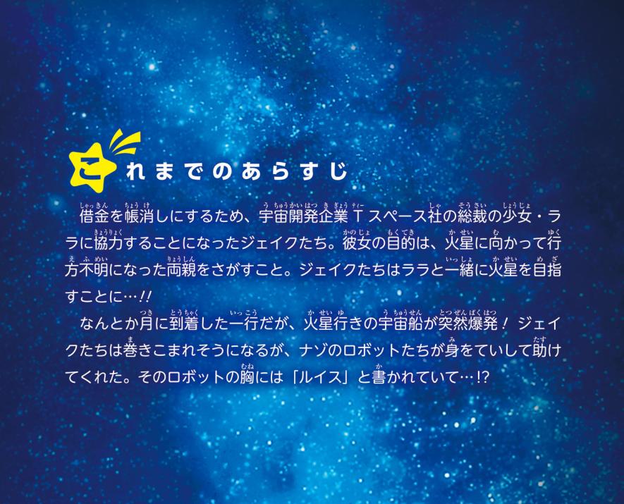 宇宙開発企業Tスペース社の総裁の少女・ララの両親をさがすため、ジェイクたちは火星を目指す。広大な銀河を旅する、ハラハラドキドキの宇宙大冒険!!