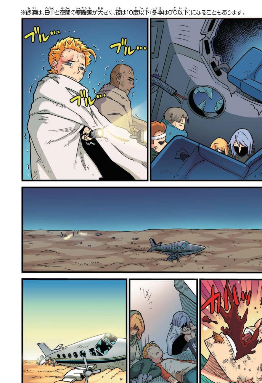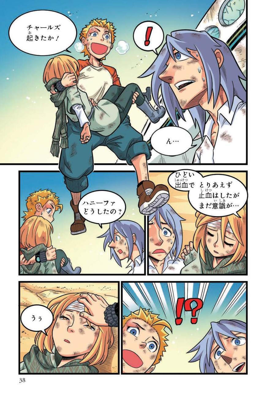 幼なじみのハニーファと「アラル海調査」に向かったディグスたちは、ダーウィン博士の手配ミスで、見知らぬ町で列車を降ろされてしまう。そこで出会った男の飛行機に何とか乗せてもらえたけど、まさかのエンジントラブルで砂漠に不時着!