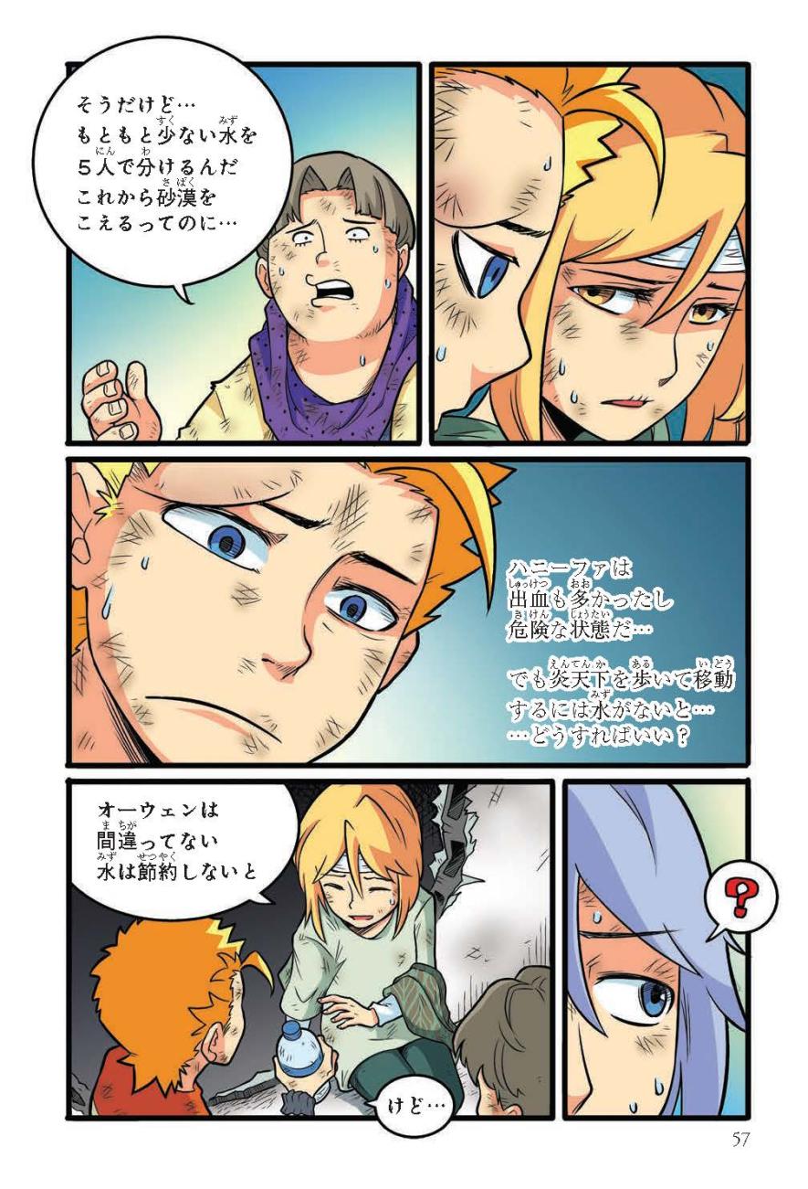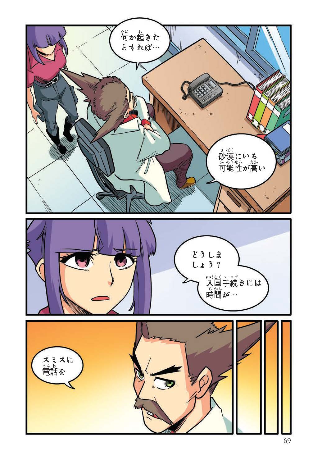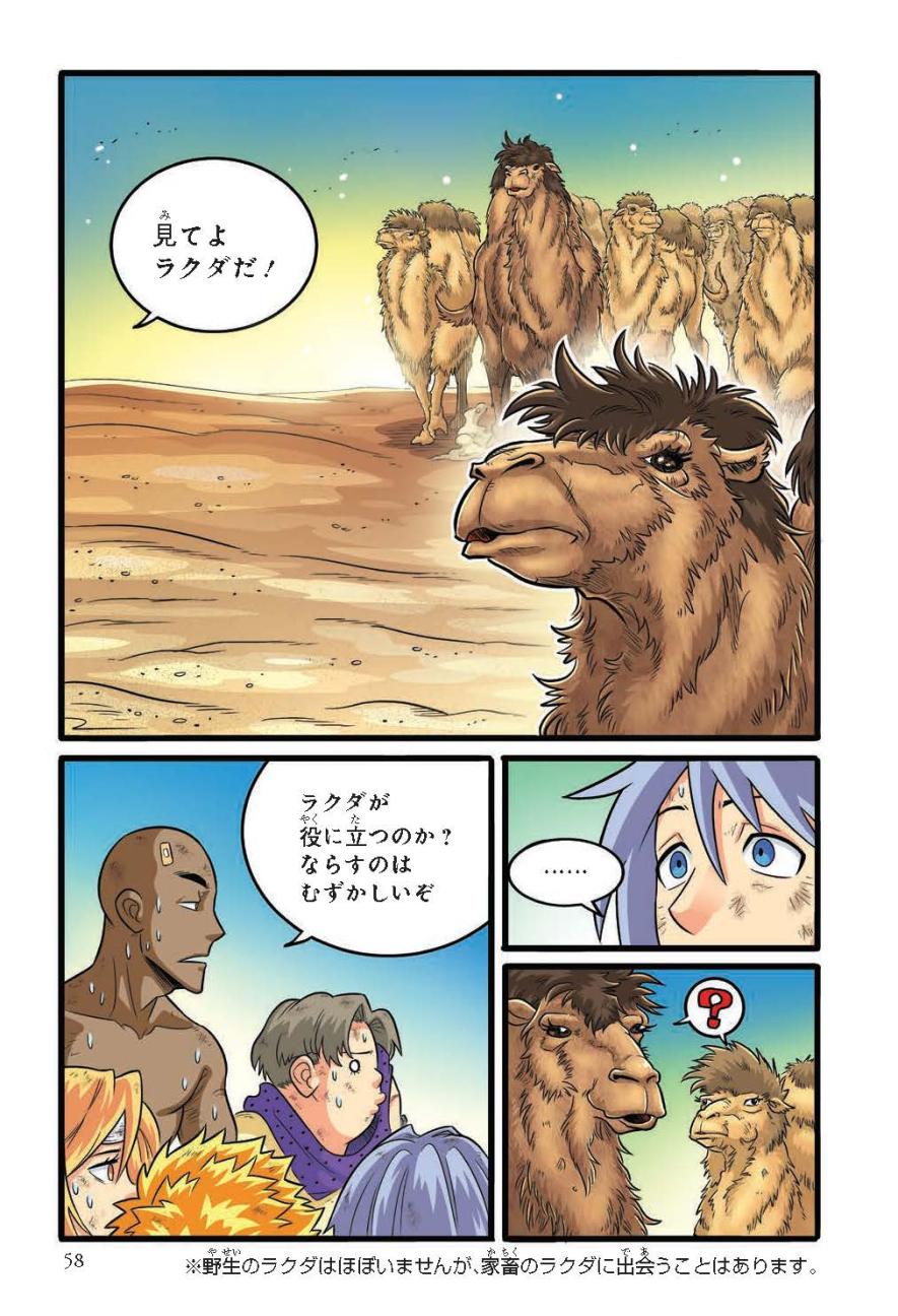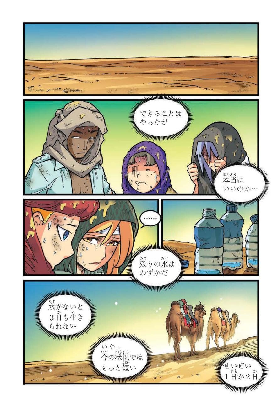 幼なじみのハニーファと「アラル海調査」に向かったディグスたちは、ダーウィン博士の手配ミスで、見知らぬ町で列車を降ろされてしまう。そこで出会った男の飛行機に何とか乗せてもらえたけど、まさかのエンジントラブルで砂漠に不時着!