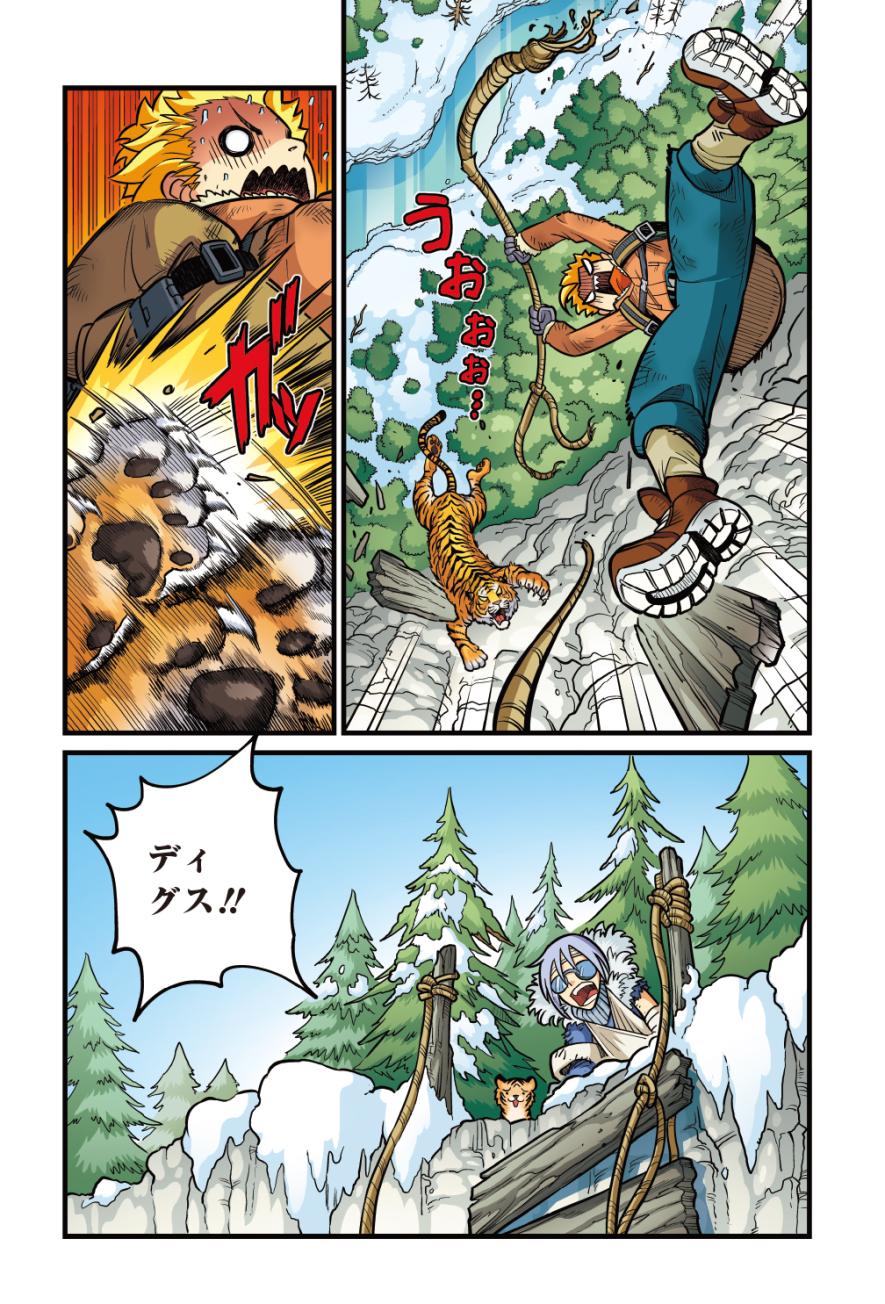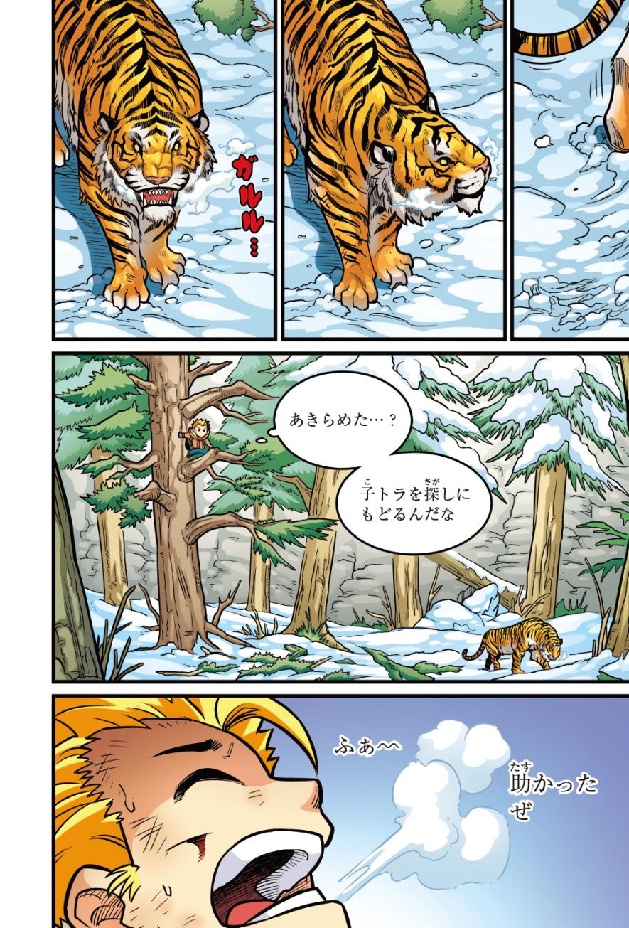 ロシアの山岳地帯で、廃棄物の不法投棄が秘密裏に行われている!? 情報をつかんだディグスとチャールズに、山の達人・ニコたちも合流して雪道を進む。廃棄物を発見したのもつかの間、一行は武装グループにおそわれ、その影響でなだれが発生! ようしゃなく体力をうばう厳しい寒さと、子を取り返そうとする凶暴なシベリアトラの出現で、ディグスは大苦戦! 次から次へと起こるピンチ、どう切りぬける!?