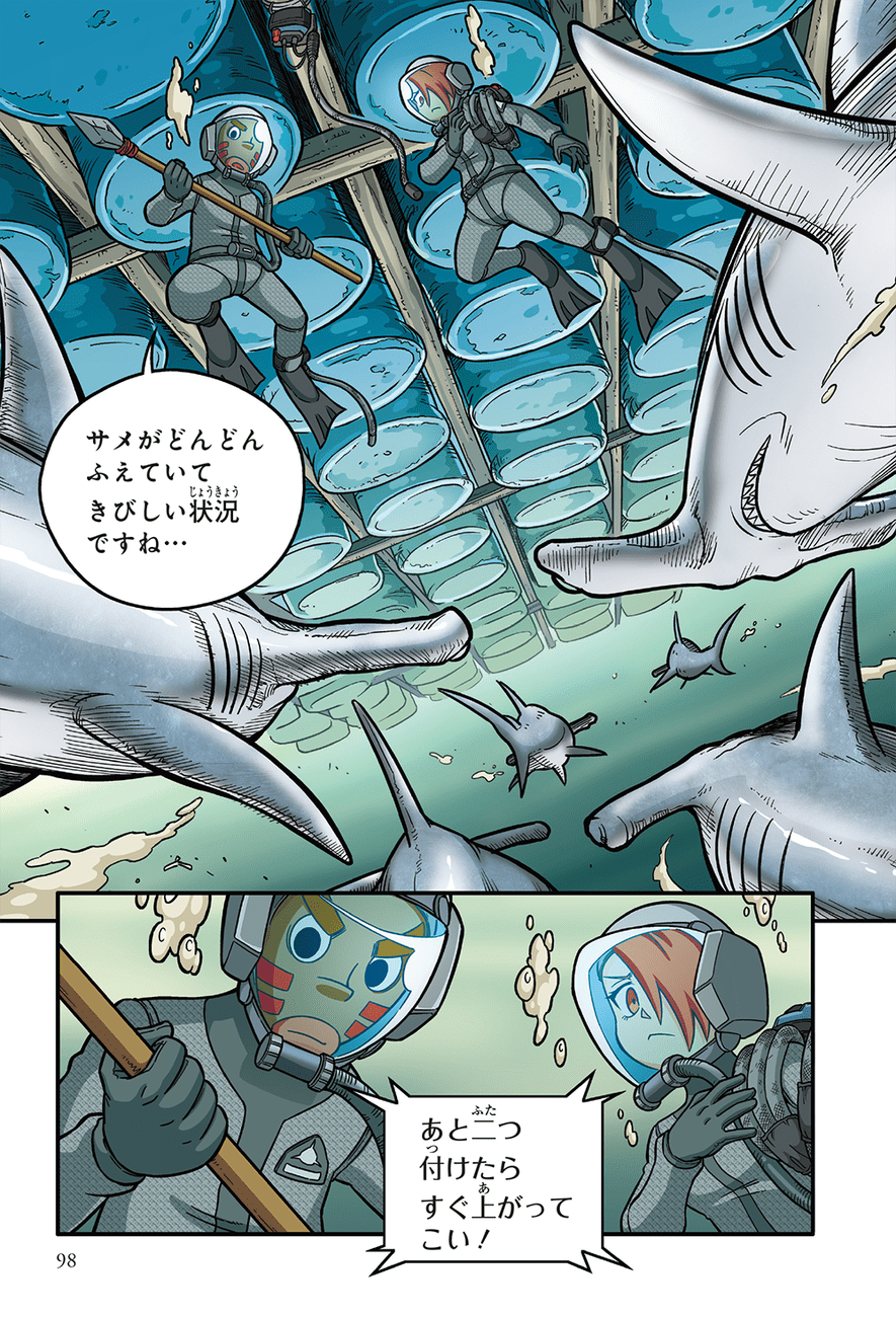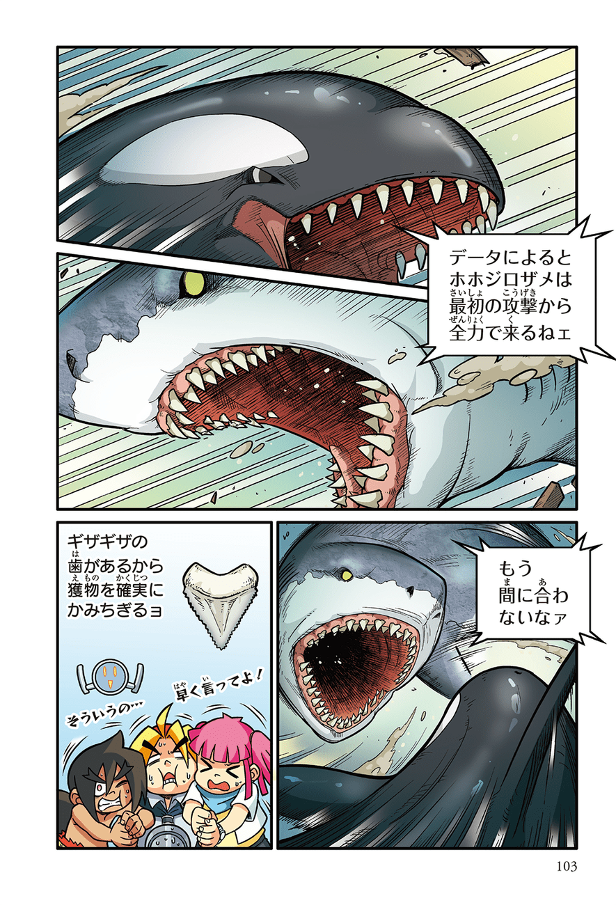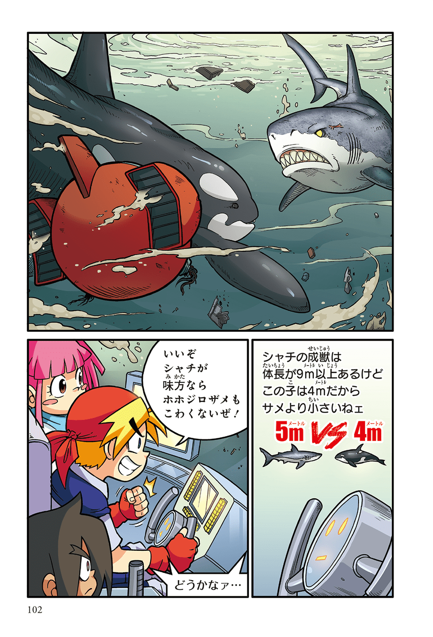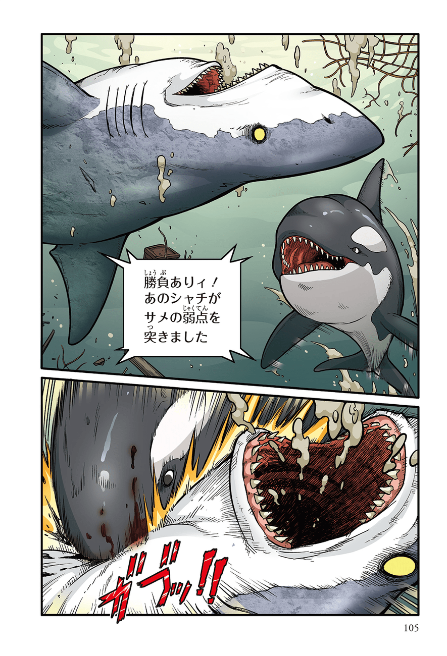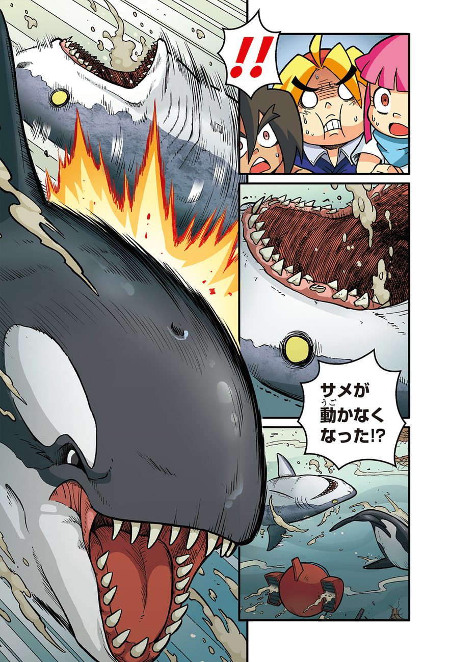高い知能と狩猟能力を持つシャチ、敵を感知する特殊能力と高い攻撃力を持つシュモクザメ。勝つのはどっち!? 手に汗にぎる、夢の生物対決シリーズ第23弾『どっちが強い!? シャチvsシュモクザメ 恐怖!海の殺し屋対決』(10月22日発売)をひと足はやく、その一部、第6章を公開!