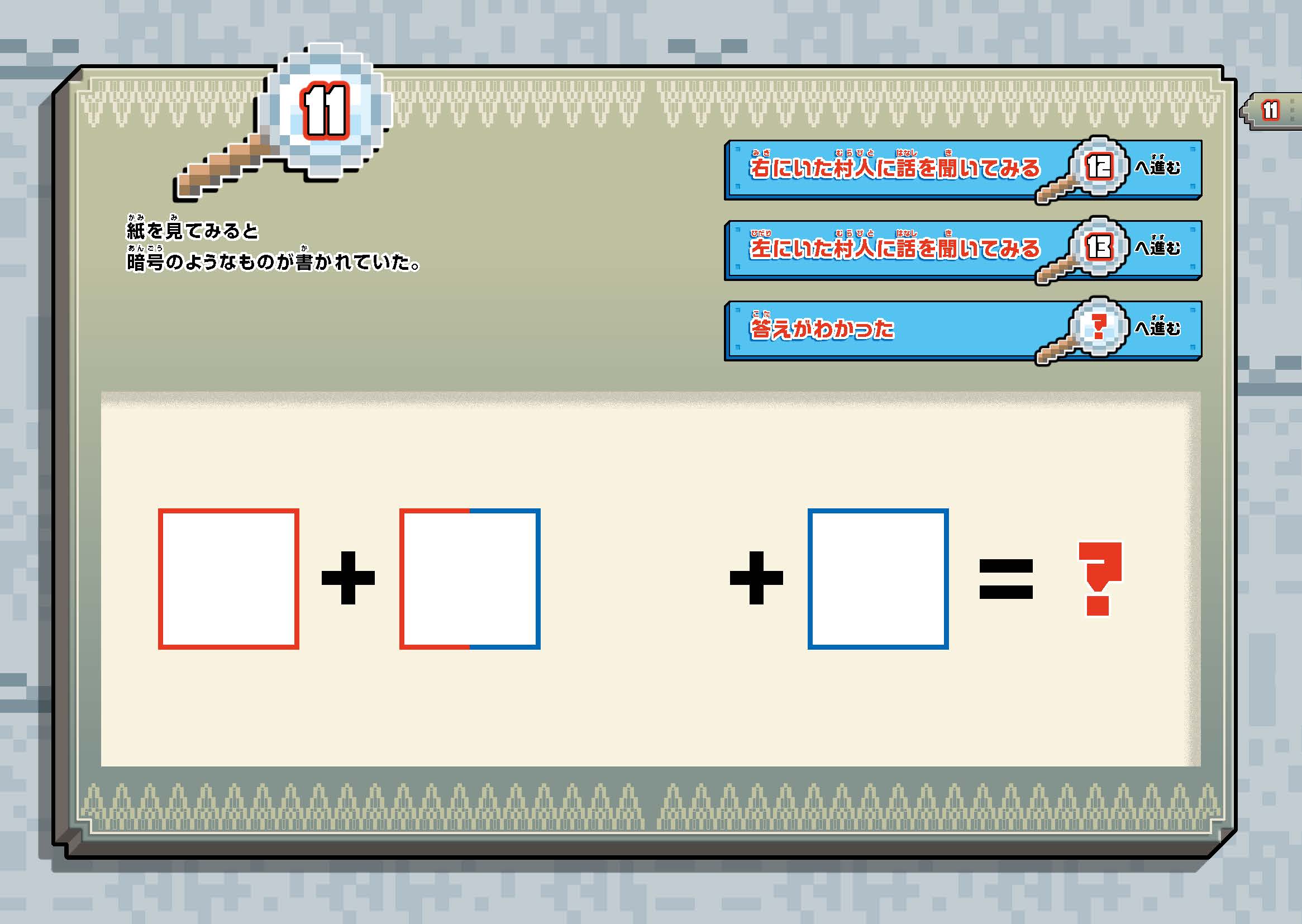 NEW 知る・まなぶ 2025.12.10 11 『ウォーターチャレンジ ゲームブック マイクラ都市伝説を調査せよ!』ためし読み キャラぱふぇ マインクラフト この記事をブックマークする 11 紙を見てみると暗号のようなものが書かれていた。 左にいた村人に話を聞いてみよう! 13へ進む → 書籍情報 ウォーターチャレンジ ゲームブック マイクラ都市伝説を調査せよ! ウォーターチャレンジ ゲームブック マイクラ都市伝説を調査せよ! 監修: ウォーターチャレンジ 【定価】 1,540円(本体1,400円+税) 【発売日】 2025年12月10日 【サイズ】 A5判 【ISBN】 9784049165807 ためし読み 紙の本を買う 電子書籍を買う マイクラの本、ぞくぞく登場! この記事をブックマークする この記事をシェアする