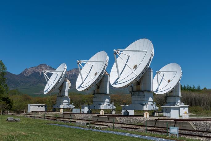 ブラックホールは、ほかの天体と比べると大変小さな天体なので、ふつうの光学式望遠鏡では視力が足らず、観測できません。そのため、観測にはとても高い視力が得られる電波望遠鏡を使います。