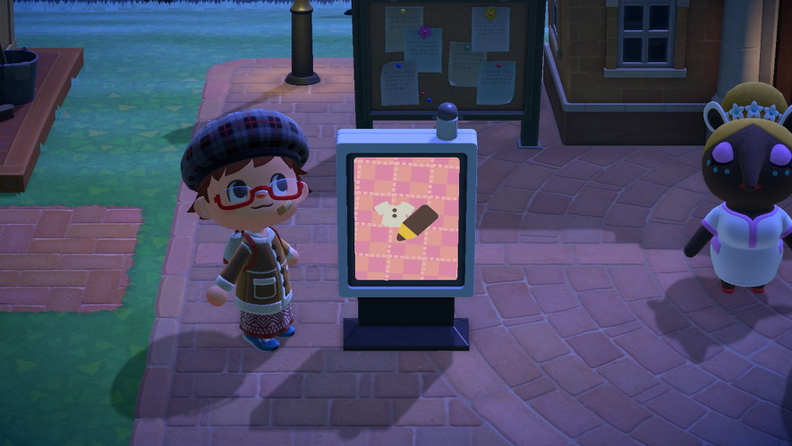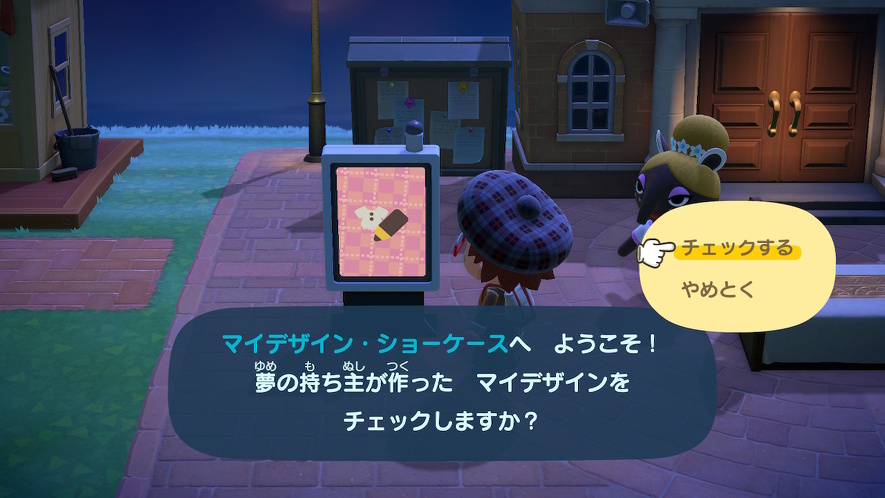 広場の左側にある端末“マイデザイン・ショーケース”を調べるだけ。