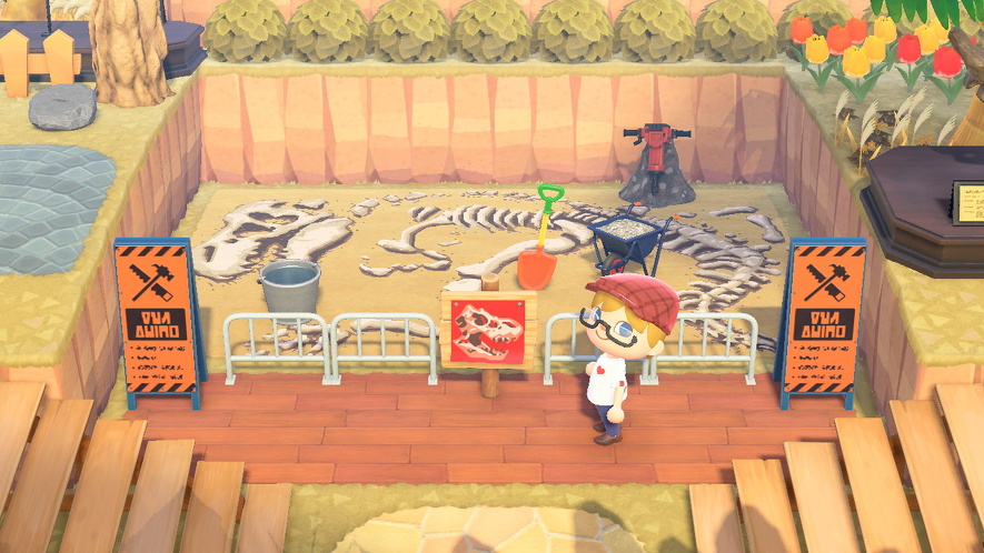 どこに設置しても事件のにおいがしてしまうレスキューマネキンに大喜びなゲットくんだけど、それで遊んでばかりはいられません。そこでさっそく始めたのが、森ゾーンの中央に設営した“Tレックスの発掘現場”のリニューアルです。