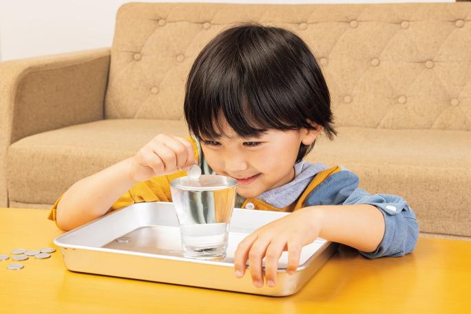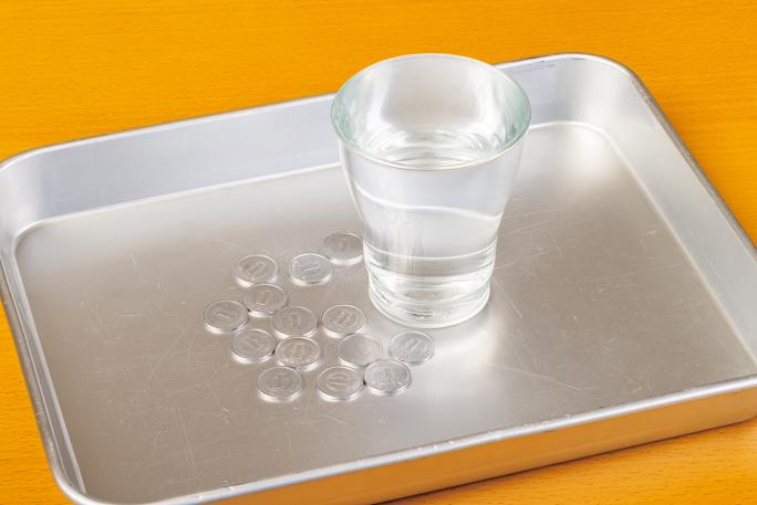 用意するもの:コップ、水、1円玉(10枚くらい)