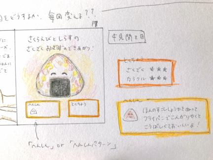 おにぎりの完成ページでは「へんしん」と「とくちょう」の項目を入れました。