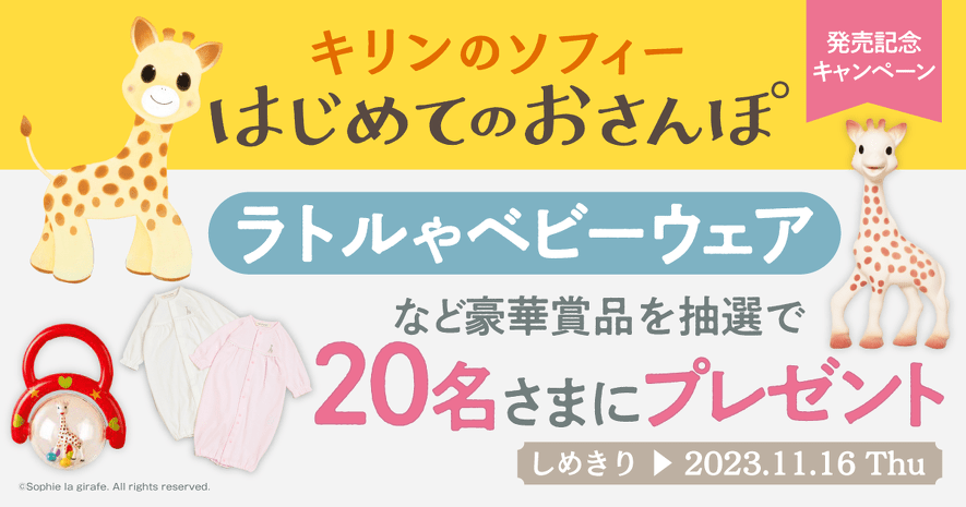 柔らかく香りのよい天然ゴム製で、押すとキューキューと可愛らしい鳴き声が出る、赤ちゃんのはじめてのおともだち「キリンのソフィー」。昔から変わらない安心・安全な製法で作られるフランス生まれの歯がためで、「フランス人はソフィーと一緒に育つ」と言われるほど。日本のママ・パパにも「おしゃれな出産祝い」として選ばれている、とっておきのおもちゃです。