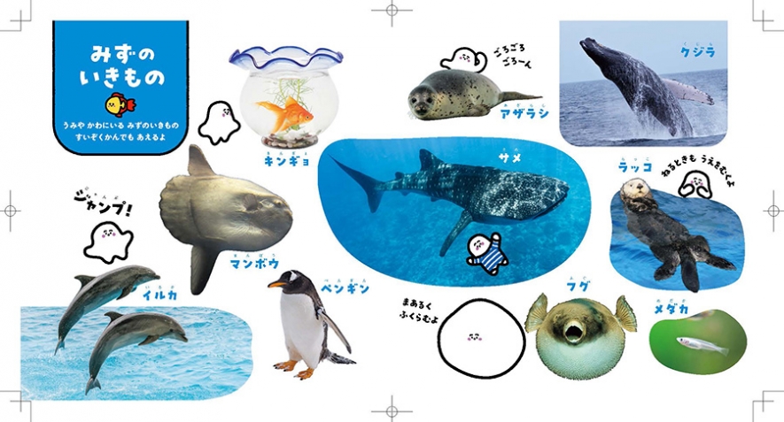 すべての言葉を平仮名にするのではなく、外来語や生き物の種名は小学生向けの学習図鑑と同じくカタカナにしました。カタカナの上には平仮名をつけて、赤ちゃんから未就学児まで、誰でも読みやすいように工夫をしています。