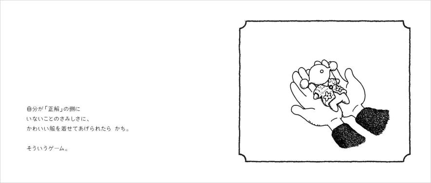 実は『そういうゲーム』のアイデアは5年前にいただいていたのですが、いろいろあって形になっていませんでした。『メメンとモリ』の次回作をご依頼したら、『そういうゲーム』をやるならこのタイミング、と仕上げてくださったのです。ラフを拝見したとき「もうこのテーマはゴーリーしかないでしょ」とすぐにモノクロに決定しました。