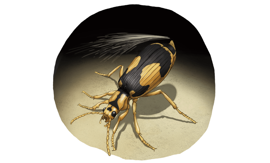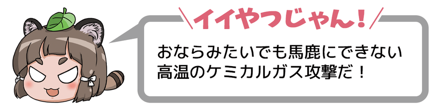 ぷぷぷっ…ゴミムシだなんて変な名前の虫がいるんだなぁ。どれどれ、ちょっとつついてみようかな…って、熱ッッ! このミイデラゴミムシは危険を感じるとお尻から100℃のめちゃくちゃ熱いガスを噴射するとんでもない虫なんだ。しかも、ものすごくくさい! そのせいで「屁っぴり虫」というあだ名がつけられているんだけど、実はこの武器があるおかげで、カエルに食べられたときも高温ガスで吐き出させる事ができるんだよ。 おならも役立つときがあるんだね。