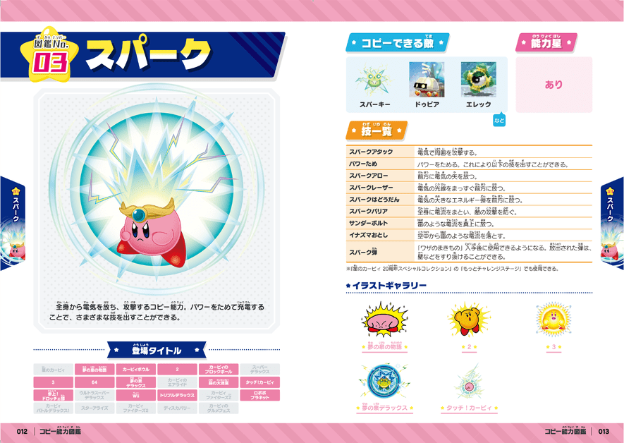 『星のカービィ ディスカバリー』や『カービィのグルメフェス』に登場した新たな能力はもちろん、過去作すべてのコピー能力を完全掲載!