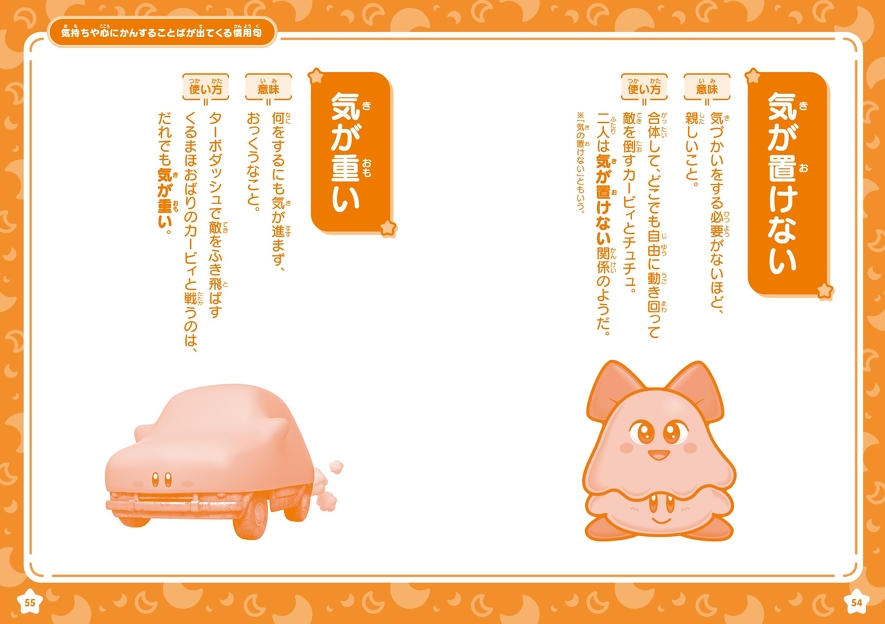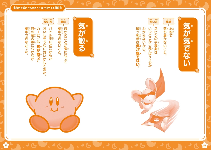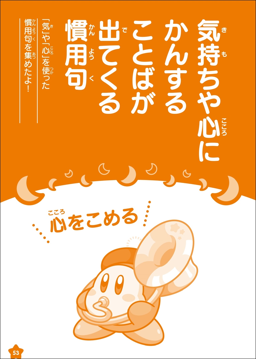 使い方の例文にはカービィや仲間たちが登場するので、楽しみながら慣用句を身につけることができる1冊です!