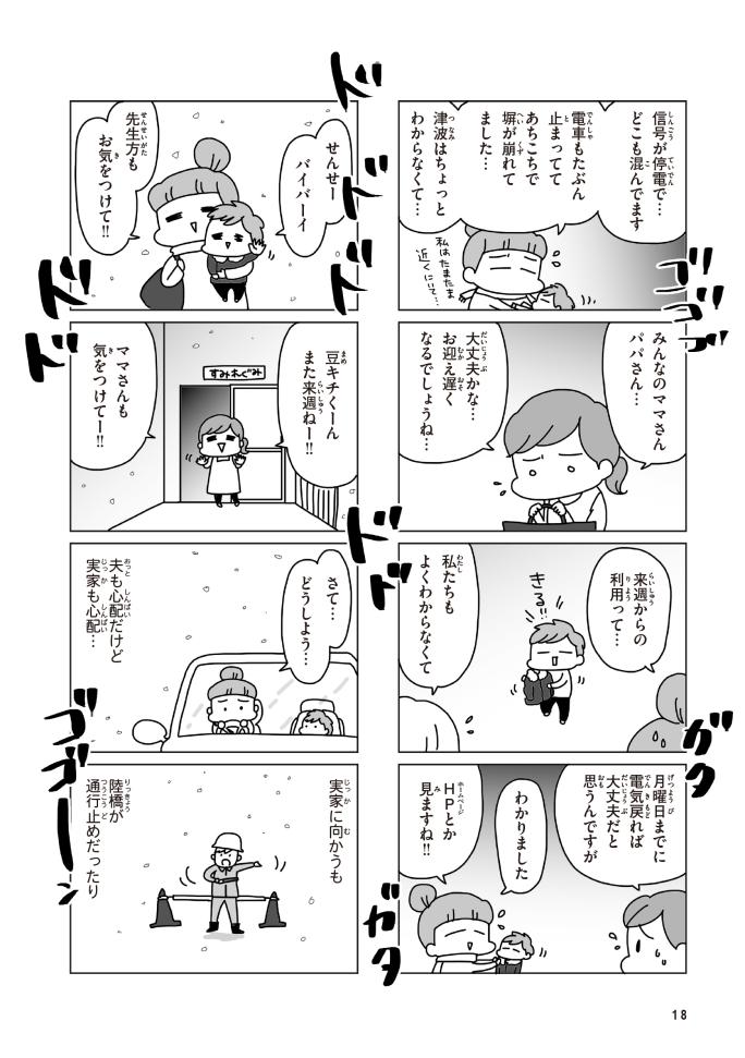 2026年3月に、東日本大震災から15年の節目を迎えます。当時の記憶のない方も増えてきた昨今、ぜひ家族と一緒にマンガを通して、【今日、地震があったら】をお話してみてください。
