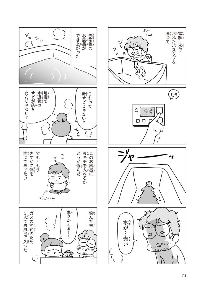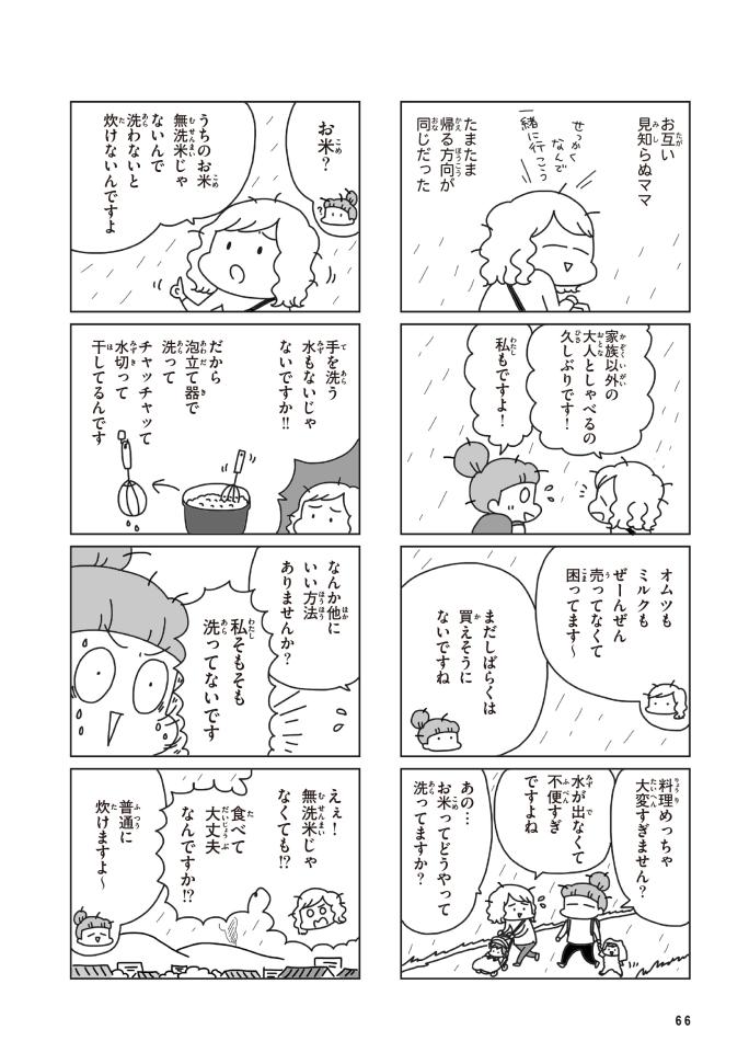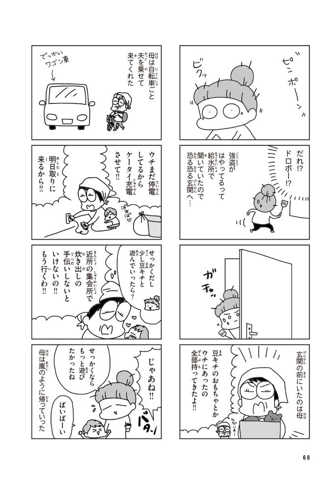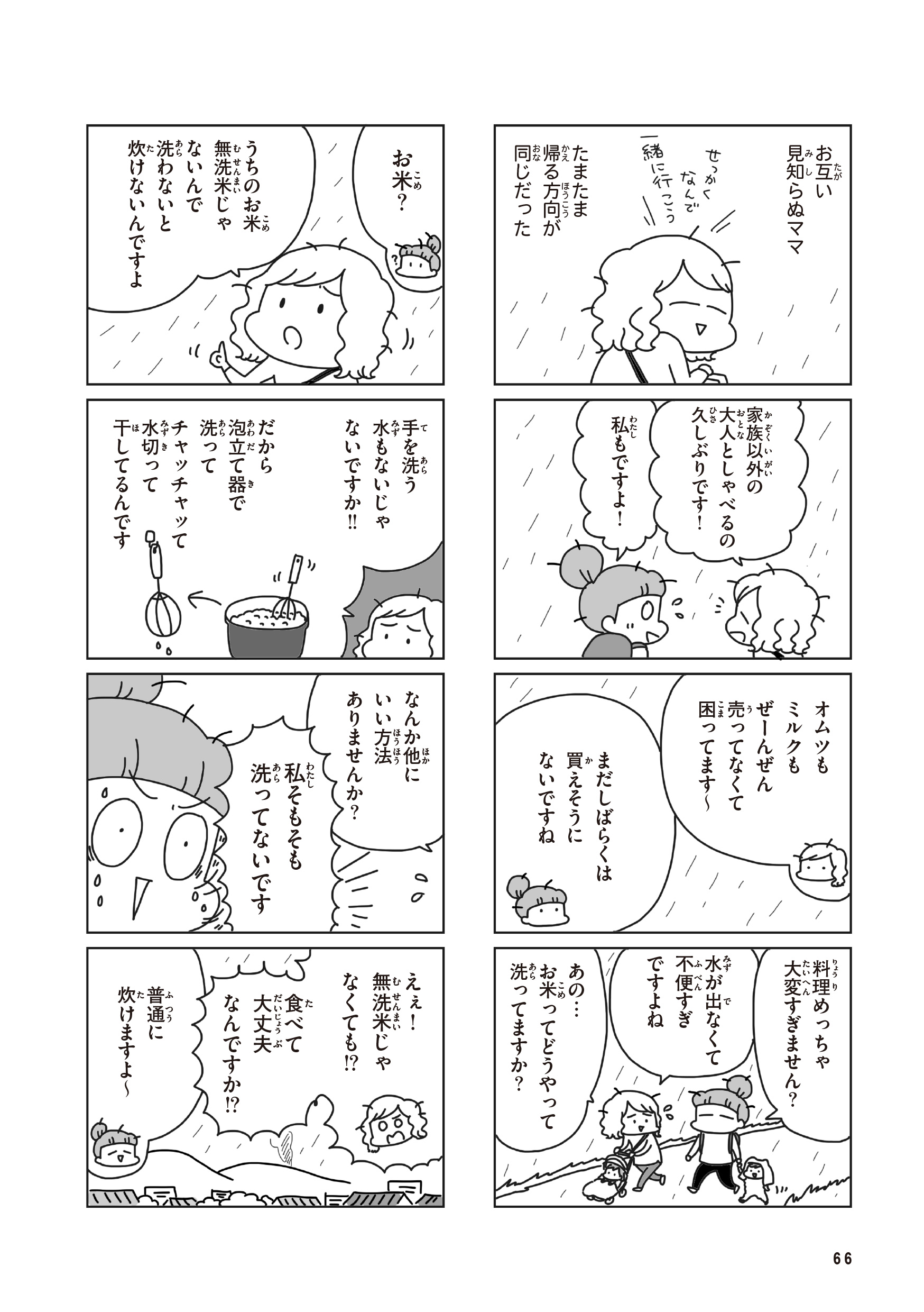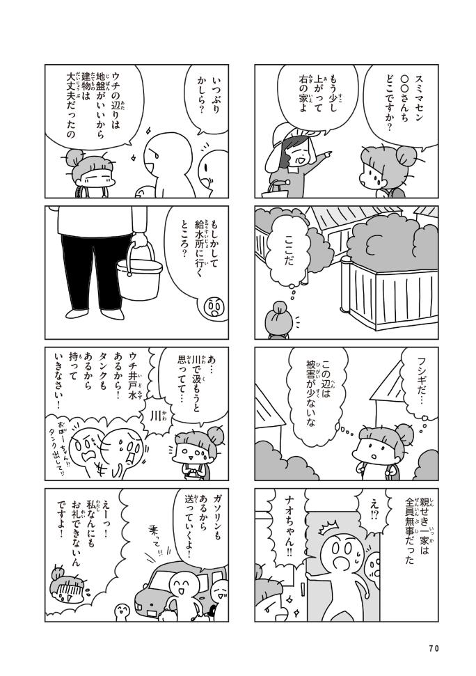 世界がひっくり返るような地震が起きても、人間はお腹も減るしトイレにも行きたくなるし、赤ちゃんは夜泣きをします。著者のアベさんは、命のことを第一に考えながらも、電気や水がない中で今日のごはんや子どもの心と体のケアのことも考えていました。本書は、混乱しながらも生活を続けた約3週間の日記コミック。読めば、被災時の生活がリアルに分かり、いまできる防災の備えがイメージできます。