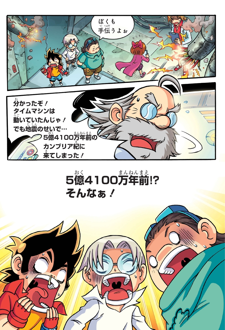 Xベンチャー調査隊のレイン、ショーン、ストーンは、5億4100万年前の地球へとタイムワープ。タイムマシンがこわれて、現代に帰れなくなっちゃった! 大事なケーブルが三葉虫にかじられたり、オパビニアにおそわれたり…大ピンチ!