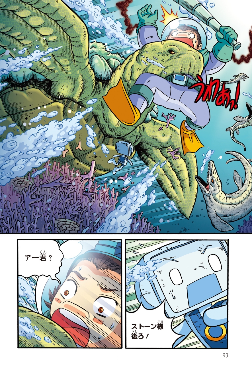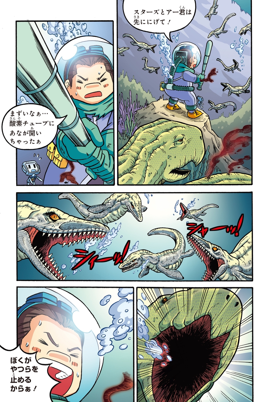 前の回 一覧へ 次の回 知る・まなぶ 2024.03.27 恐竜キングダム⑨ 海の危険生物、大集合! 角川まんが学習シリーズ 恐竜 この記事をブックマークする ラボの修理中、ストーンが海で遭難してしまった。小型潜水艦で探しに行くレインとショーンだったが、海の皇帝・モササウルスが近づいてきた! 大切な仲間を救い出すため、最強の海中生物との戦いが始まる! 2ページ目に続く 1 2 3 この記事をブックマークする 前の回 一覧へ 次の回 この記事をシェアする