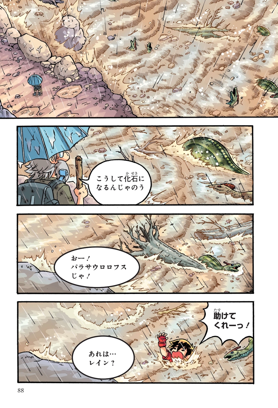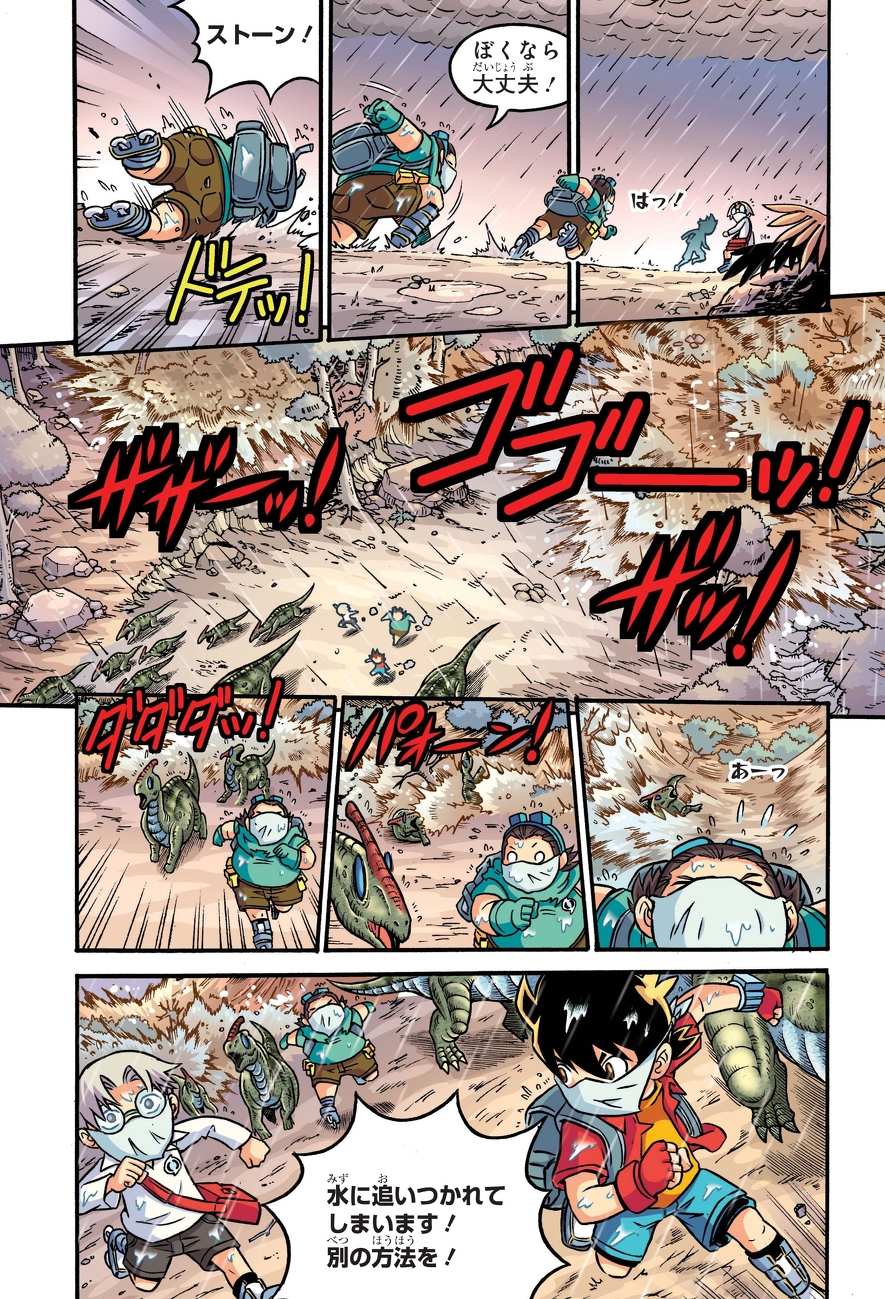 行方不明になったダビンチ博士を探すため、火山が噴火し、空から隕石が落ちてくる白亜紀での調査を続けるレインたち。さらに恐竜絶滅のタイムリミットが迫ってくるなか、ティラノサウルスとトリケラトプスの戦いが始まってしまい―!?