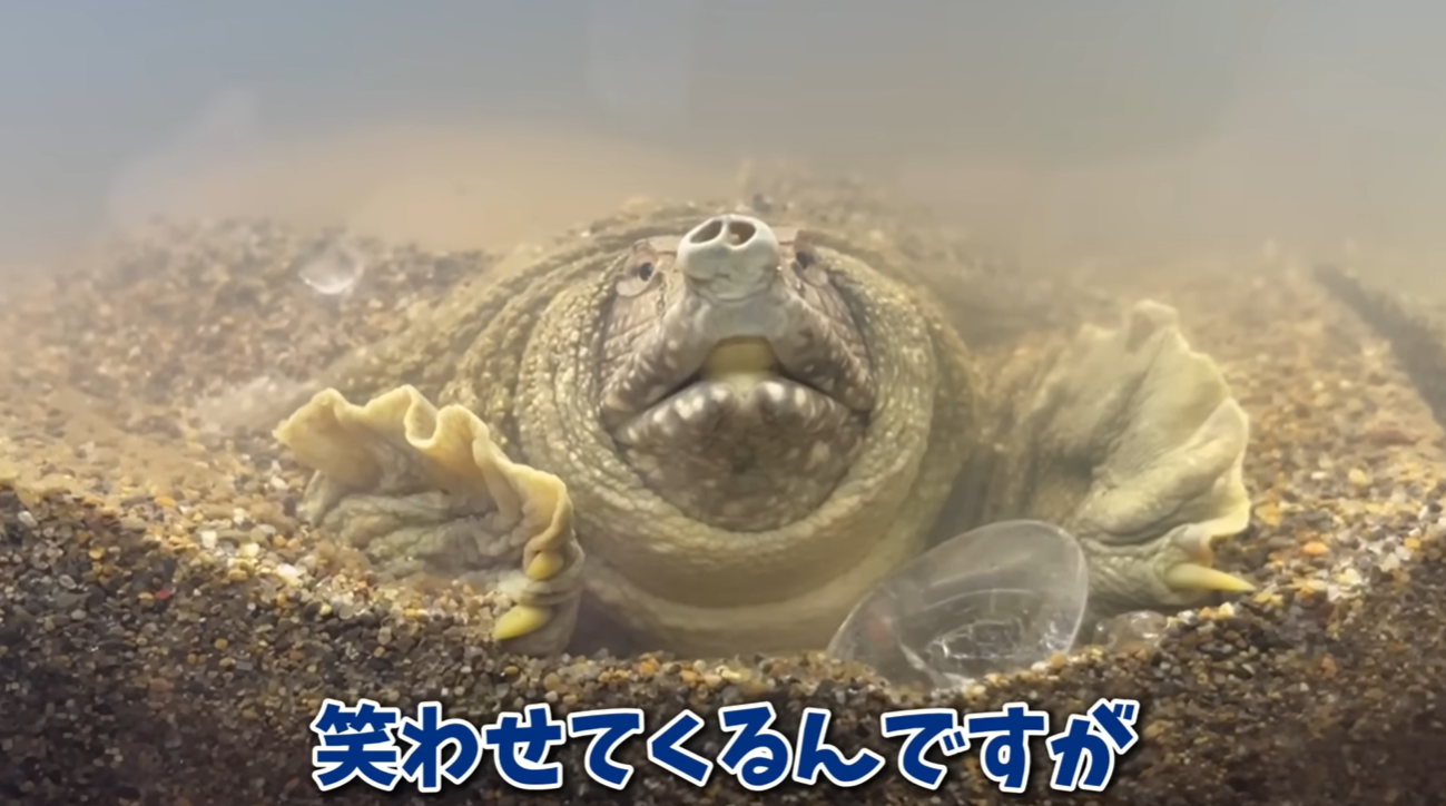 ブタっ鼻をこれでもかというくらいに見せつけてくるスッポン。それでも、なぜか愛らしく見えてしまう。なぜだ……なぜこんなにブサイクなのに、かわいいんだ!? しかし、スッポンのかわいさはブタっ鼻だけでは収まらない。