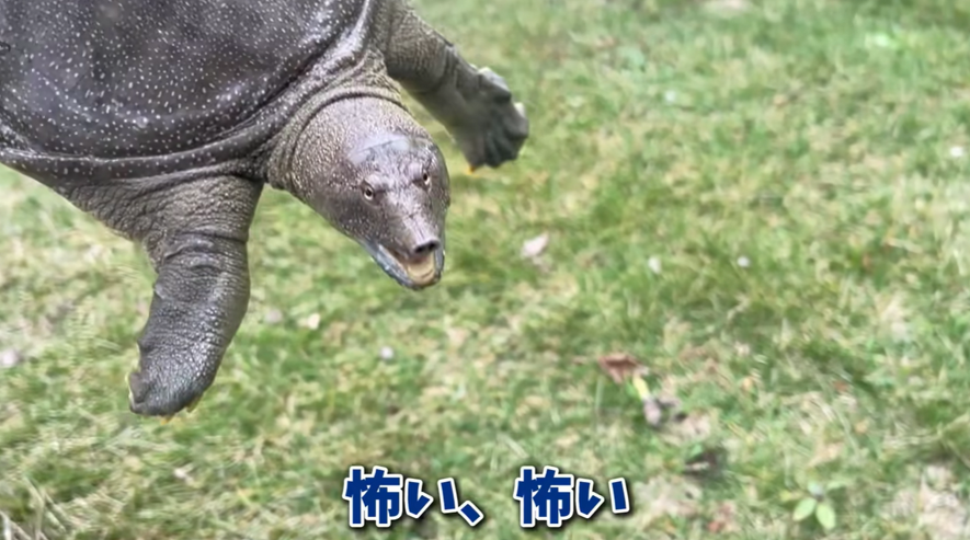 スッポンは水がなくても生きてはいけるが、体表が乾燥してしまうと弱ってしまう生きものなので、自販機で水を購入し、甲羅の部分にかけてみる。この辺りは、人間だと想像しにくいと思うが、空気が乾燥していると風邪を引きやすい、みたいなものかもしれない。