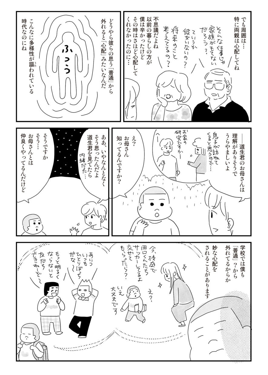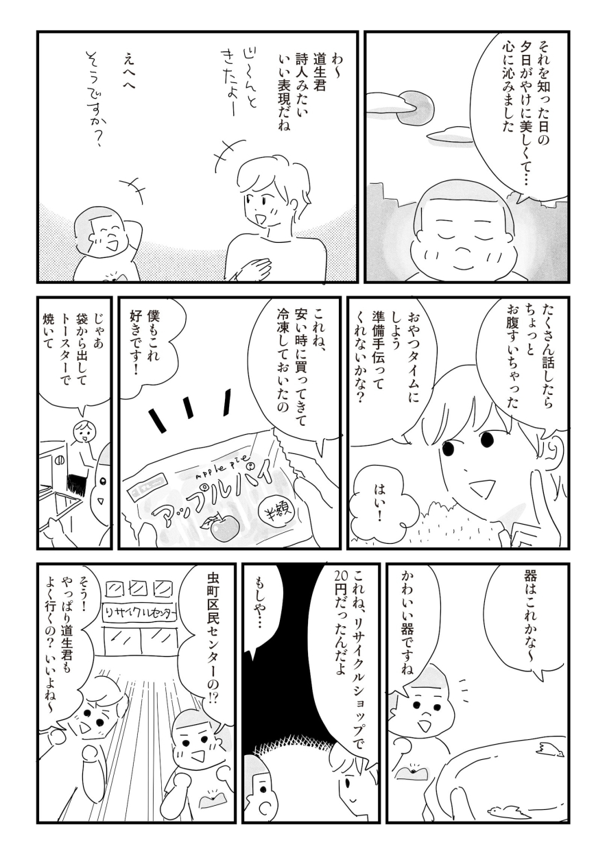 学校で周囲と馴染めない道生少年ですが、 三度の飯よりお家が好きというくらい好きなことに真っすぐなその姿は、自ずと家主たちの心を動かしていきます。