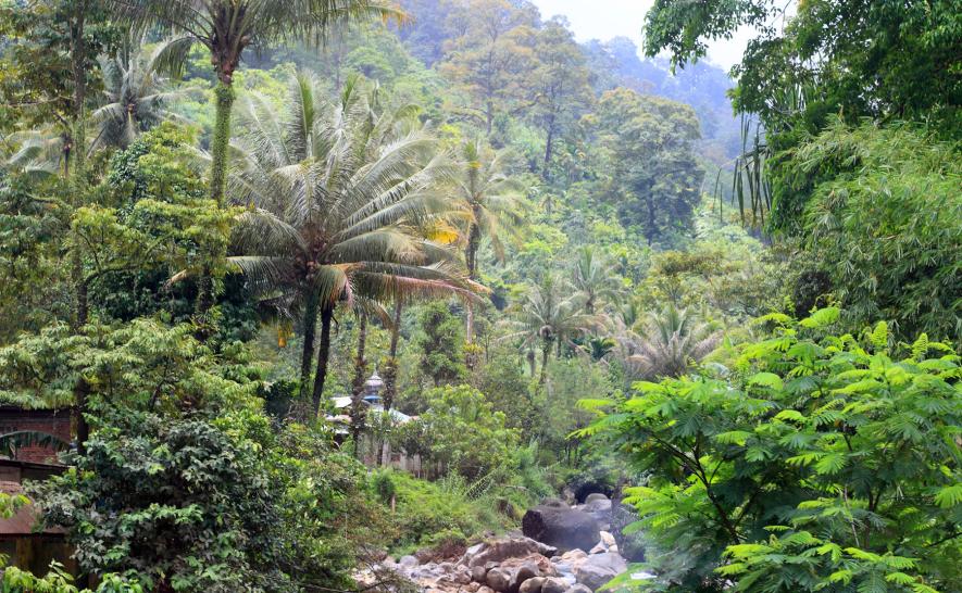 そして翌朝、ジャカルタ空港からスマトラ島のパレンバン空港まで約2時間のフライト。やっと昆虫観察ができるぞ!と思いきや、なんと空港から車で約8時間の移動……。山のふもとのとある村に到着し、ここがゴールかと思いきや、なんと待ち受けていたのは1時間の山登り……。