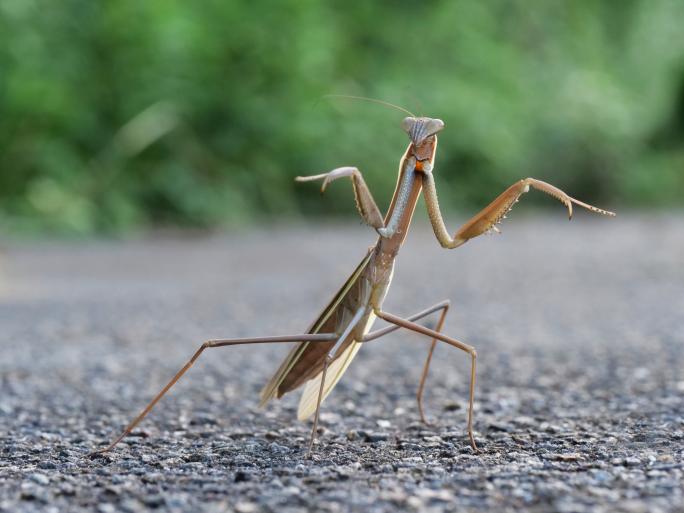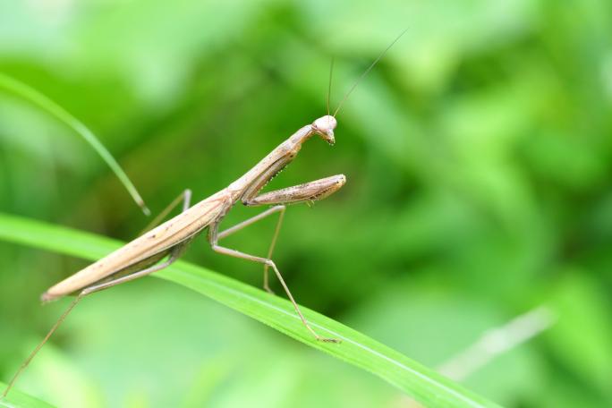 カマキリとはカマキリ目に属する昆虫の総称です。前脚に1対の大きなカマを持っているのが特徴です。カマキリは肉食性の昆虫で、バッタやチョウなどさまざまな他の昆虫を捕食します。体も植物に似た緑や褐色をしているため、植物に擬態して他の昆虫を待ち伏せしています。現在日本では14種類のカマキリ(外来種を含む)が確認されています。ほとんどのカマキリは、植物がたくさん生えている場所を好んで生息していますが、カマキリの種類によって好みの環境が異なります。